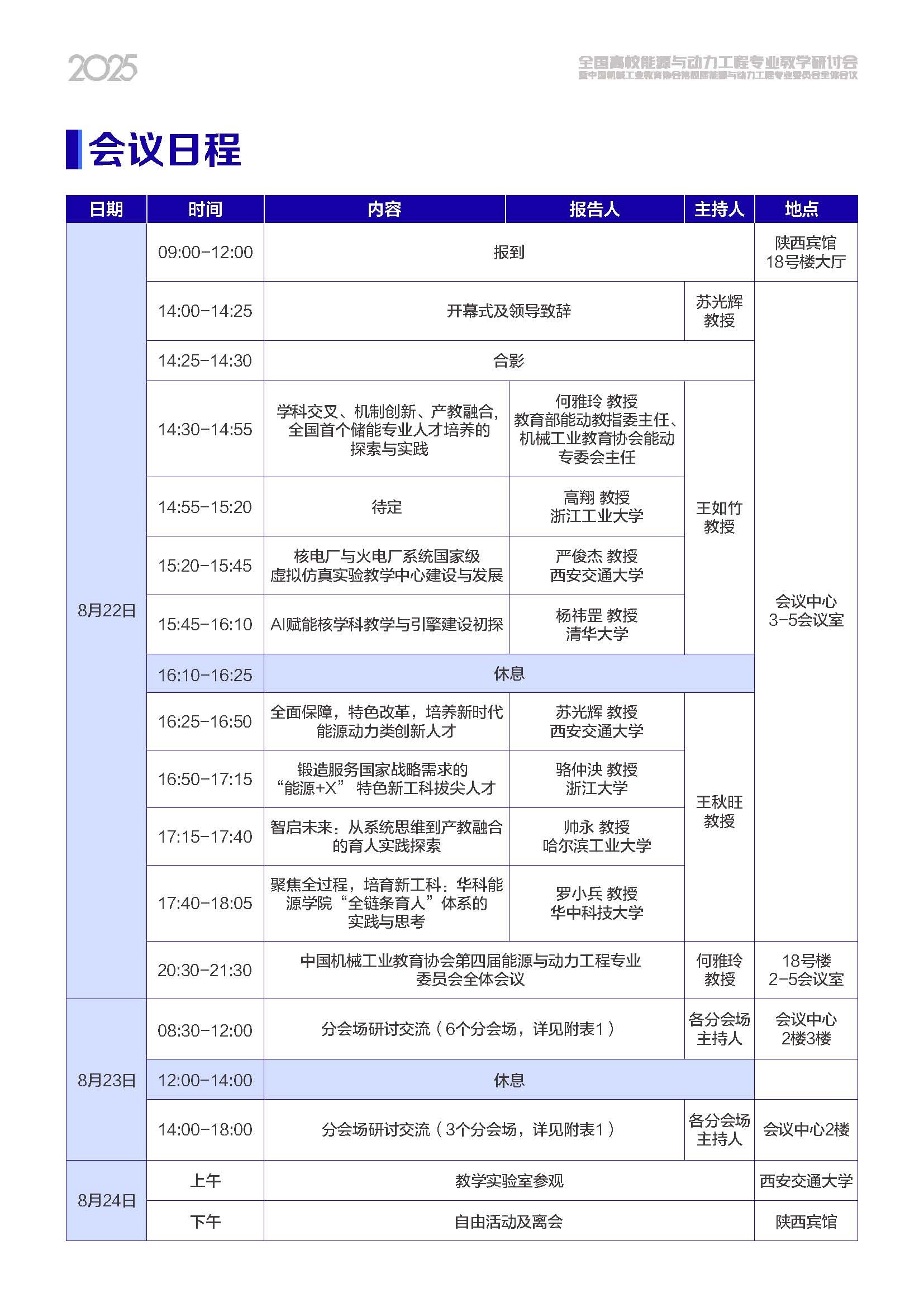 承办的“2025年全国高校能源与动力工程专业教学研讨会”(2025年8月22-24日,西安)筹备工作已进入最后阶段。现通知报名及参会相关事项,请各位参会代表查收。