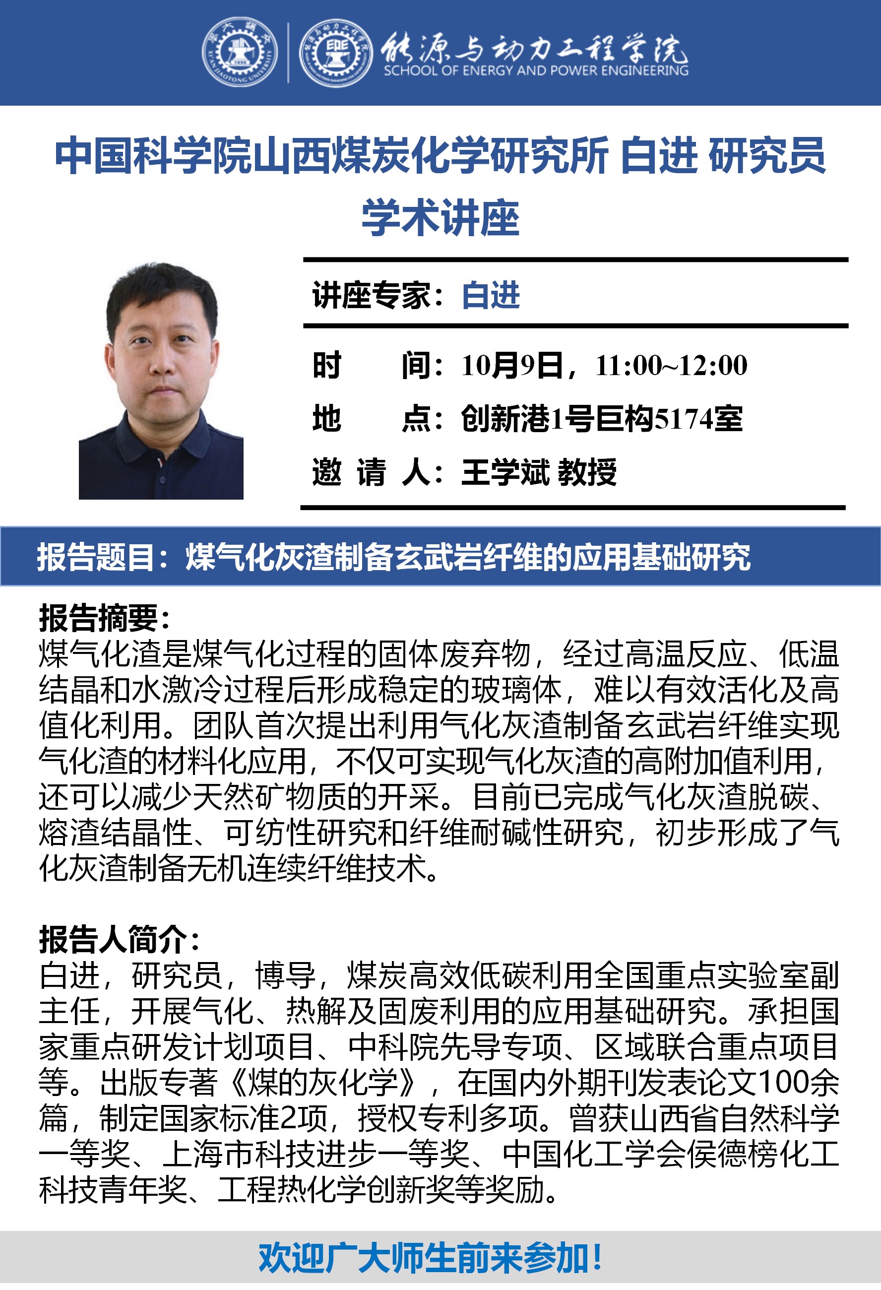 讲座题目: 煤气化灰渣制备玄武岩纤维的应用基础研究