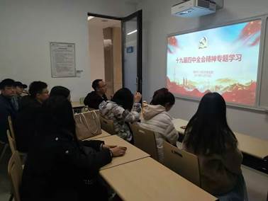 12月12日下午,硕9031/9039党支部在创新港涵英楼5-2055召开学习贯彻党的十九届四中全会精神主题党日活动。会议由党支部书记郭丁萌主持,支部全体党员及积极分子参会。