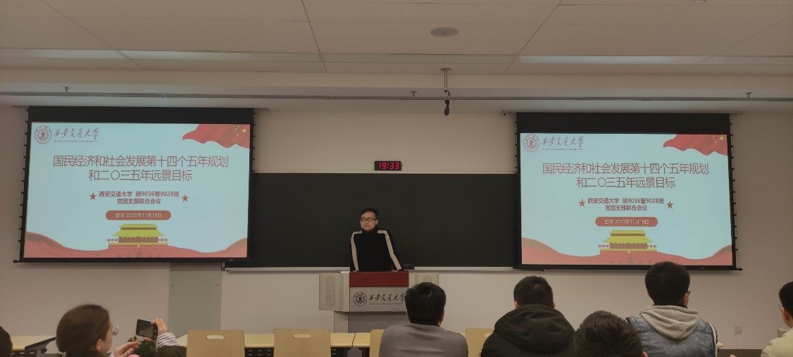 2020年11月18日晚19:30,硕9036班团支书高同心在1-4055主持召开了硕9028、9036党团支部联合生活会,学习党的第十九届五中全会精神、分享好书落实“四个一百”育人行动计划,交流科研心得促使大家共同进步。硕9028与9036班全体党员、团员共38人参加会议。