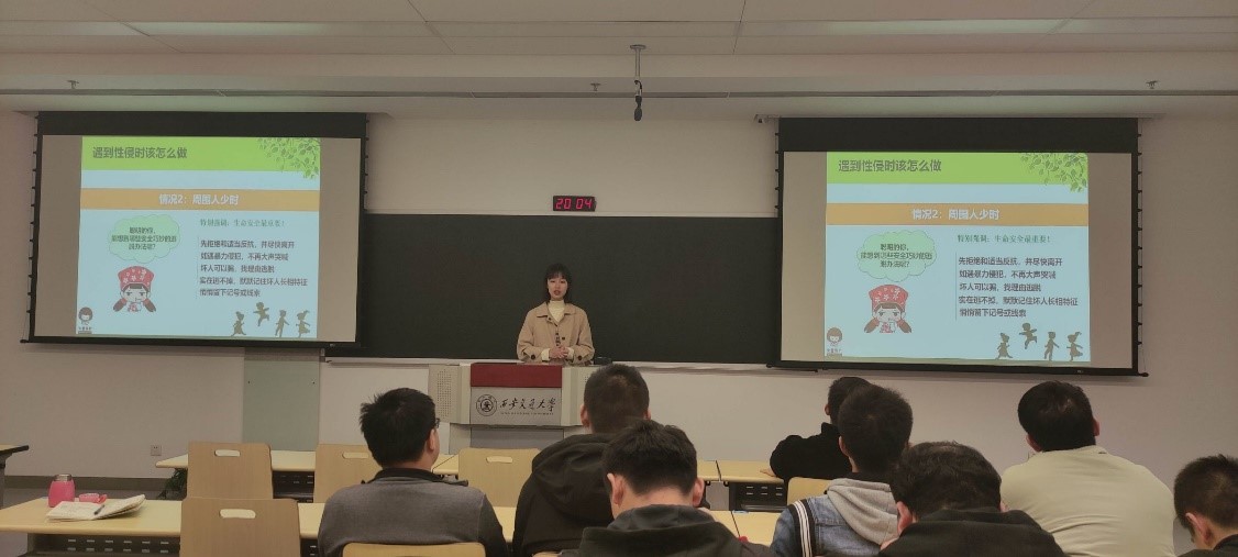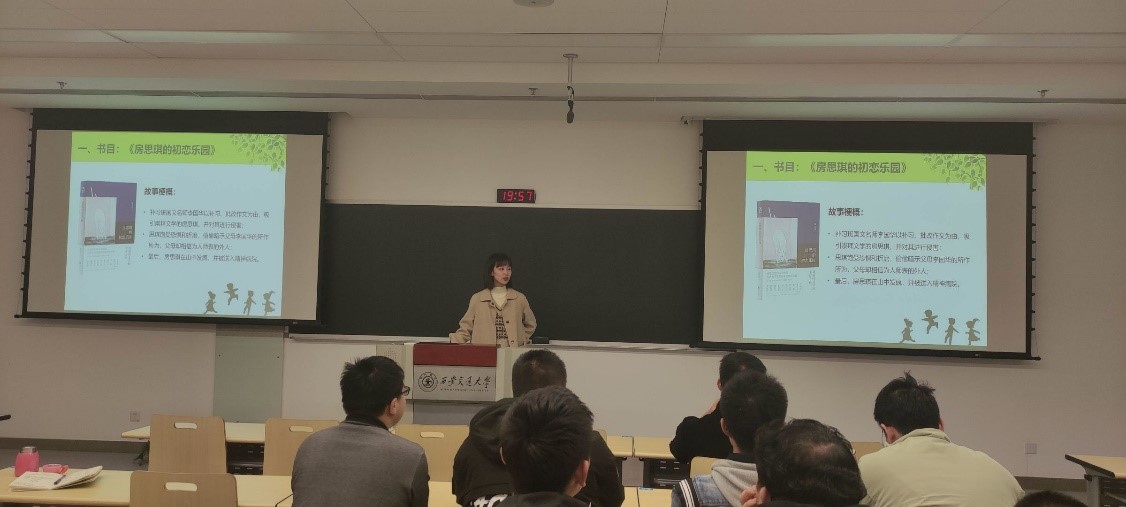 会议第二项,由9036班优秀研究生干部李彤分享好书。李彤同学为大家介绍了《房思琪的初恋乐园》一书,并联系曾经轰动韩国的“素媛案”和“宿迁王某反杀案”,分析了性教育的必要性。此外,李彤还结合自己担任“女童保护”公益讲师的志愿服务经历,分享了为小朋友们普及性教育的工作经验。