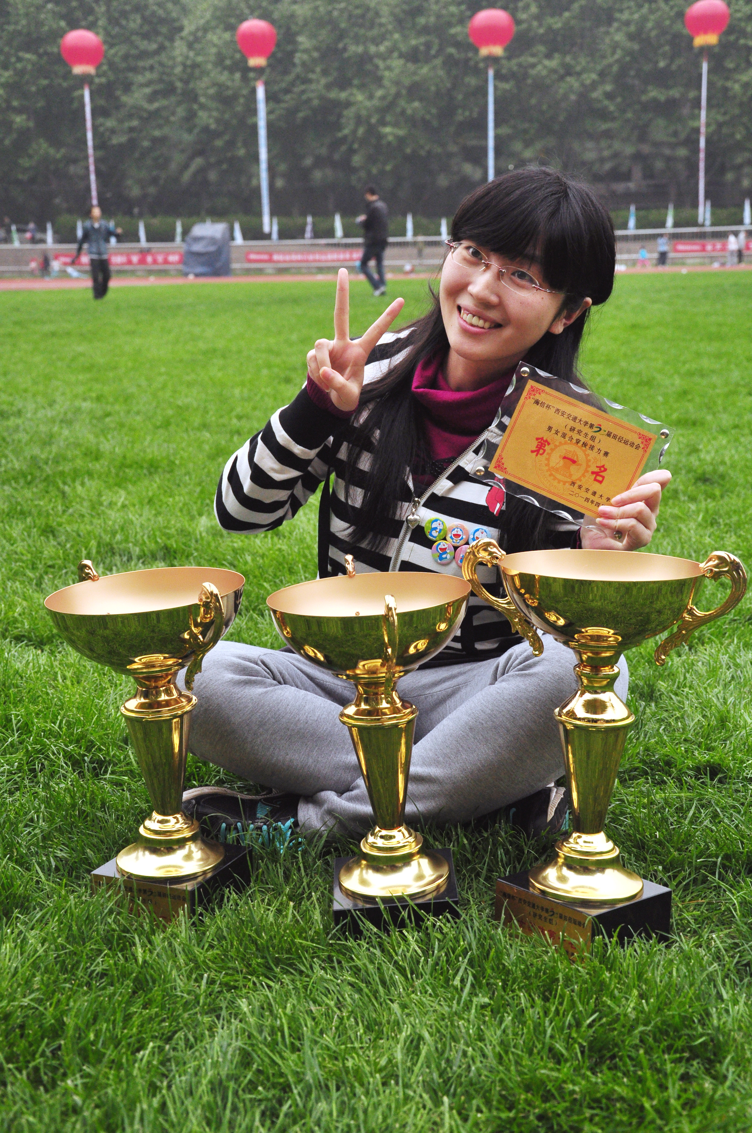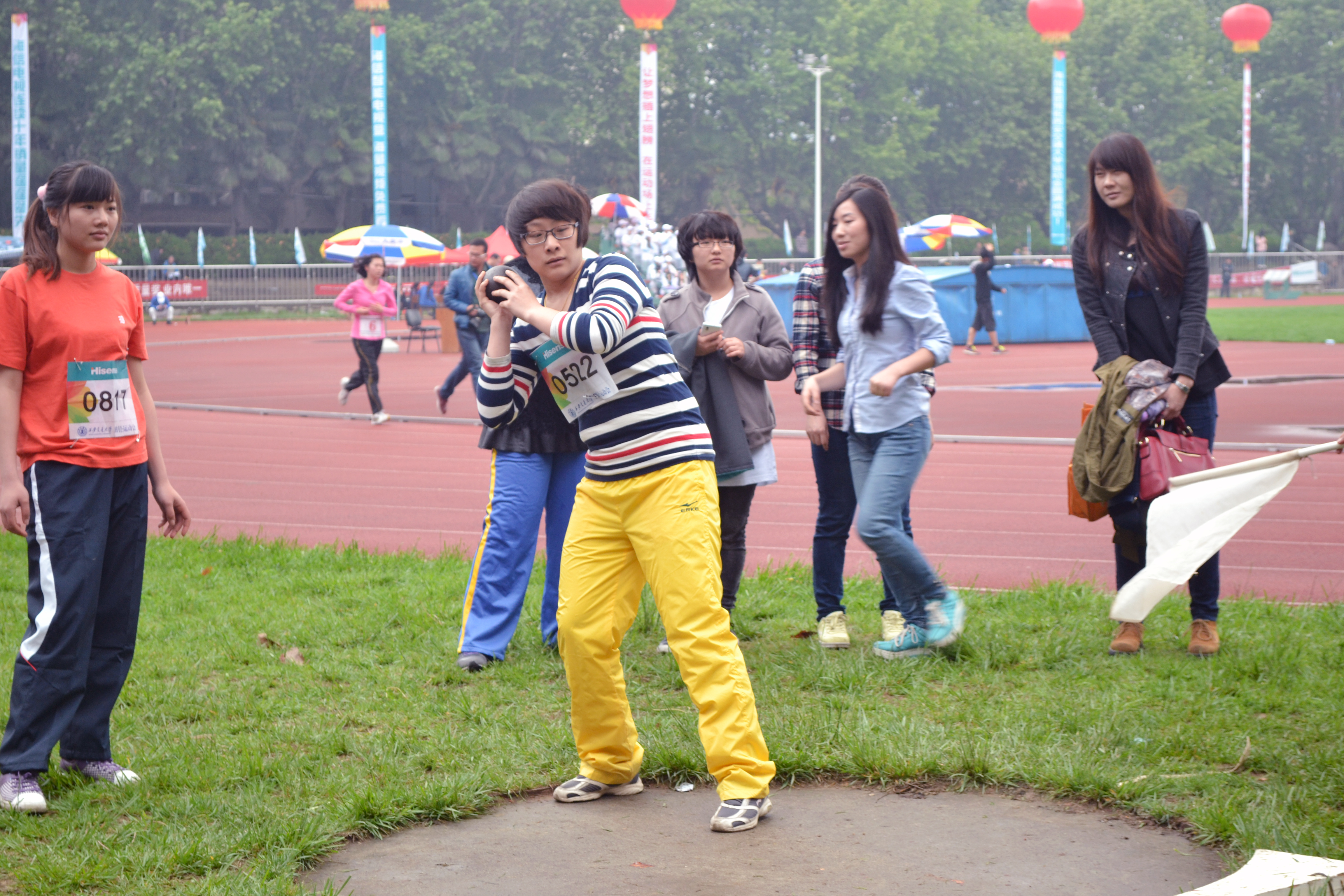 “小身板大能量”胡美玲——初见胡美玲,你一定不会想到,这个身板娇小,看似柔弱的漂亮女孩竟然会一举夺得三级跳远冠军和铁饼亚军,除此之外径赛项目也毫不示弱,在集体径赛中也获得斐然的成绩,着实令人惊叹和佩服。比赛之后对于大家的祝贺和称赞,谦虚的胡美玲都报以欣然的微笑,对于取得的成绩,她说“名次和荣誉都不是最重要,就是希望通过运动可以更加强身健体,这样才能更好的科研”。相信这也是所有能动人的心声和想法,运动不为了比赛和荣誉,练就强健的体魄才能做更多有意义的事情,这也是体育的真谛吧。