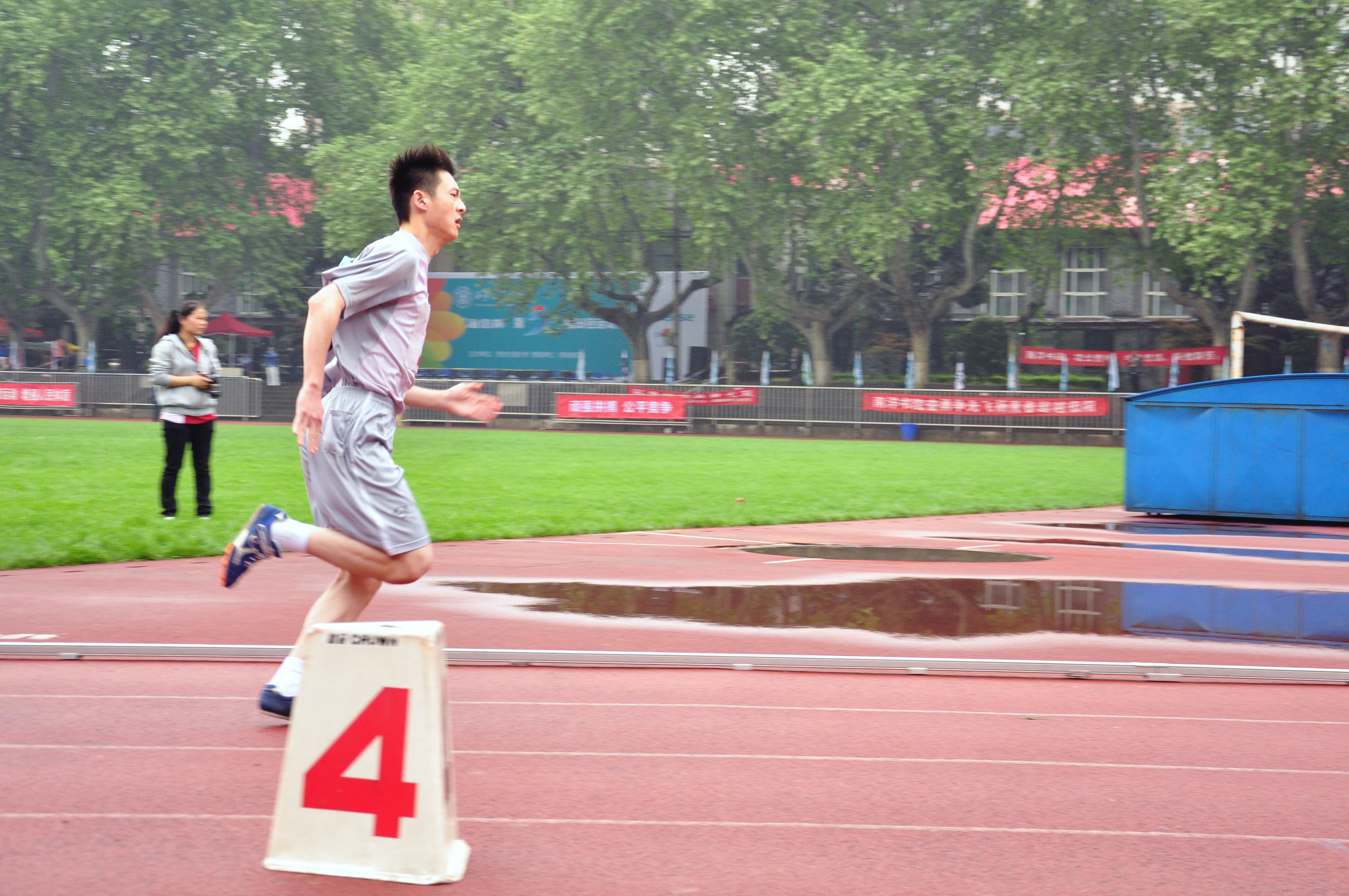 参加这个项目的是硕3012班的胡中发同学。凭借惊人的爆发力和矫健的步伐,胡中发最终在强手如云的男子百米赛中拿到了亚军。记者在采访他时,他语气有些遗憾和不服:“100米那个第一名跑得太快了。”虽然他知道那个第一名本身是个特长生。他为司机社
