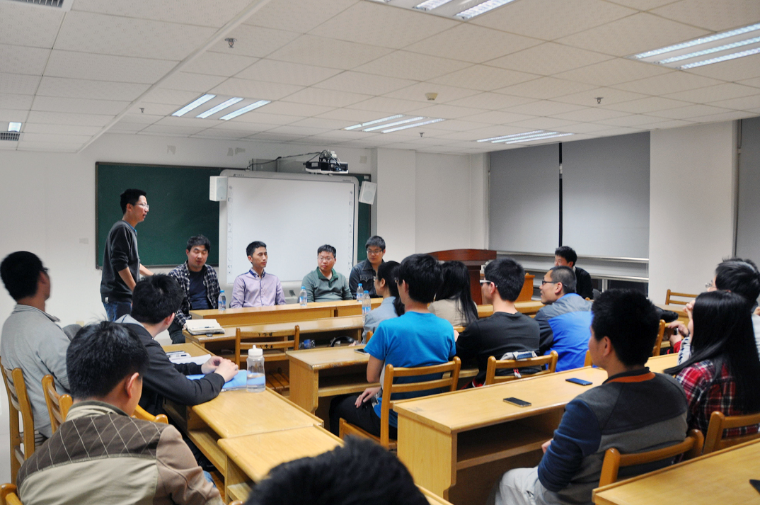 四位师兄的精彩发言迎来了同学们阵阵掌声,在提问环节同学们结合自己的实际体会和师兄们进行了深入的探讨。张虎师兄告诉大家要积极的做实验,多动脑筋,有自己的想法。郑亚师兄指出不要惧怕发文章,只要我们多积累,发文章其实并没有那么难,要多向师兄请教学习。对于读博的同学应该多做纵向的课题,这样可以使自己对于理论认识更加深入,读硕的同学应该多做横向课题,这样便于我们更加快速的融入工作当中。刘向阳师兄回答了同学们关于留校的问题,他说选择什么样的工作主要是看自己有什么样的追求,比如说有的人希望留在西安,他就要考虑西安这儿有什么合适的工作。韩伟师兄告诉我们不要轻易地放弃自己的专业,把英语学好,让自己有一技之长,这样可以让我们有更好的发展。