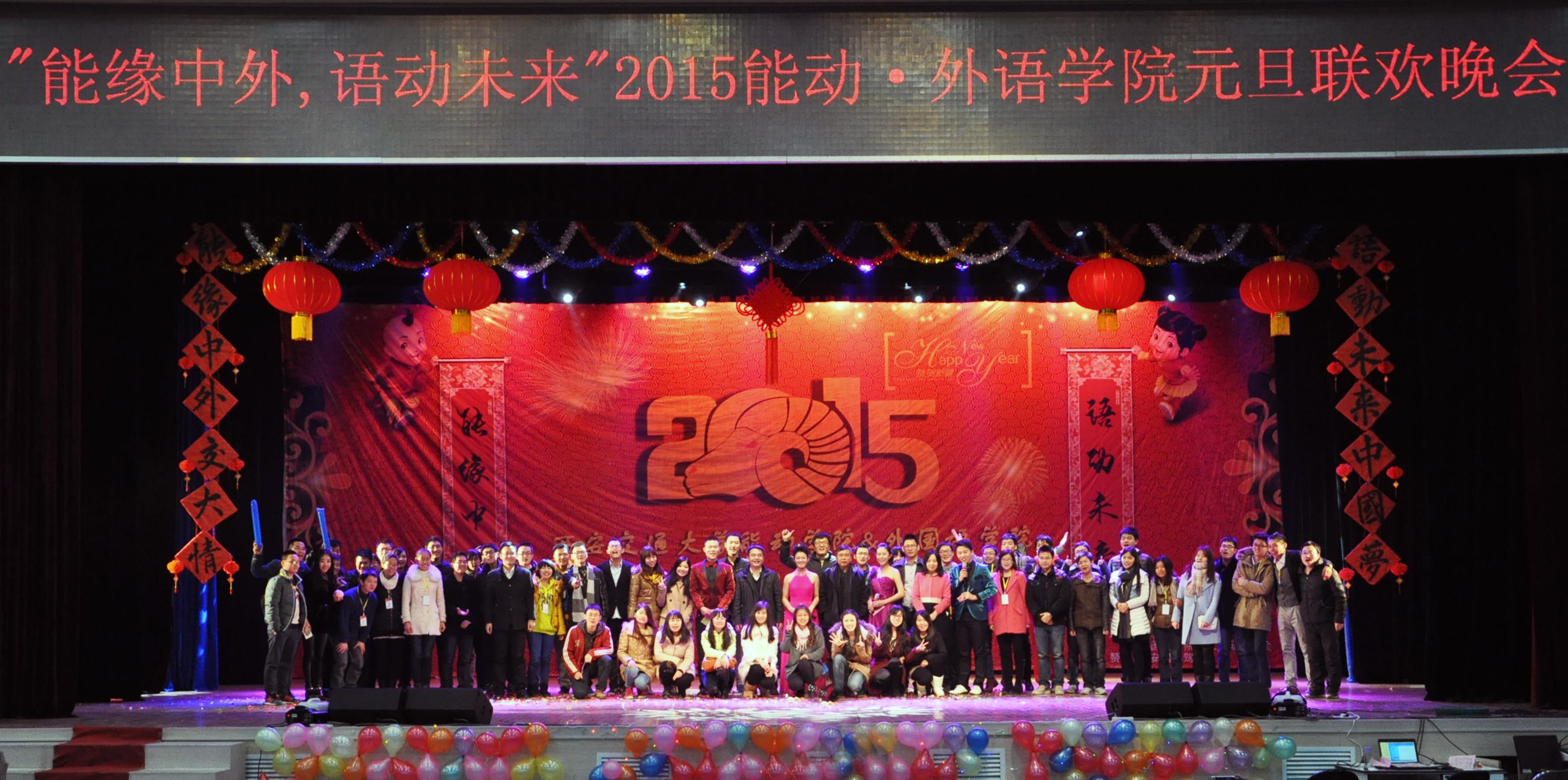 和外国语学院联合举办的“能缘中外,语动未来”2015年元旦联欢晚会在宪梓堂隆重进行。同学们精心准备的14个节目将晚会推向一个又一个高潮,两院师生欢聚一堂,共度欢庆之夜。莅临晚会现场的嘉宾有中国科学院院士、“中国锅炉专业创始人”、95岁高龄的陈学俊教授、司机社