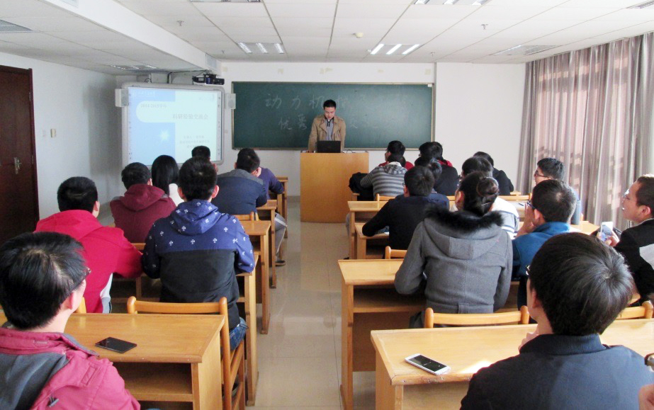 动力机械及工程系优秀学长经验交流会在北二楼1402会议室成功举行。我院动力机械及工程系李孝天、李航、谢萌、张哲源四位14级优秀研究生参加了此次经验交流会,并为研一新生答疑解惑、指点迷津。