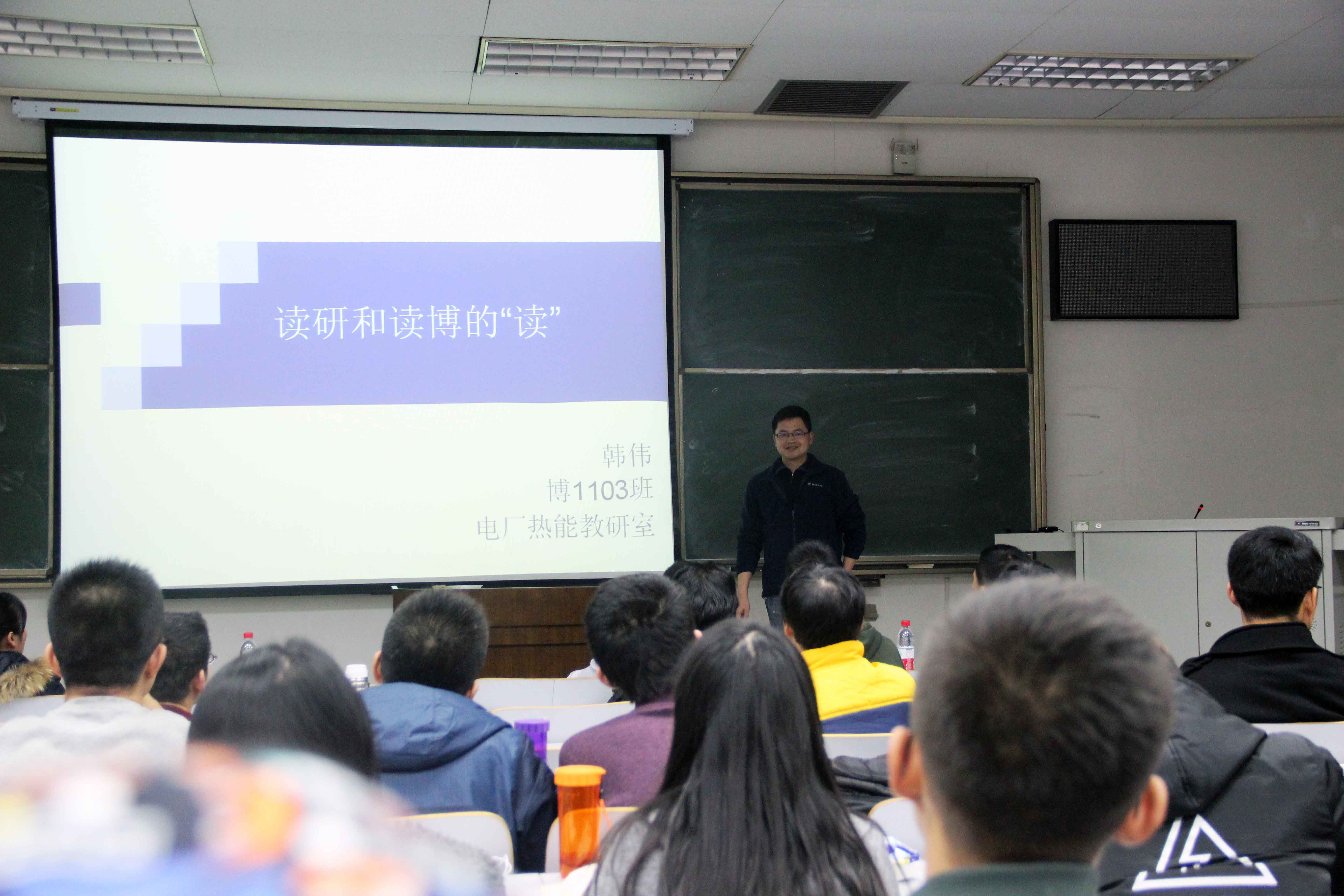 图书馆信息咨询部陈伟老师、核科学与核技术博士王成龙、动力工程及工程热物理博士段广涛和韩伟以及热能工程系博士王帅四位师兄为同学们答疑解惑,指点迷津。