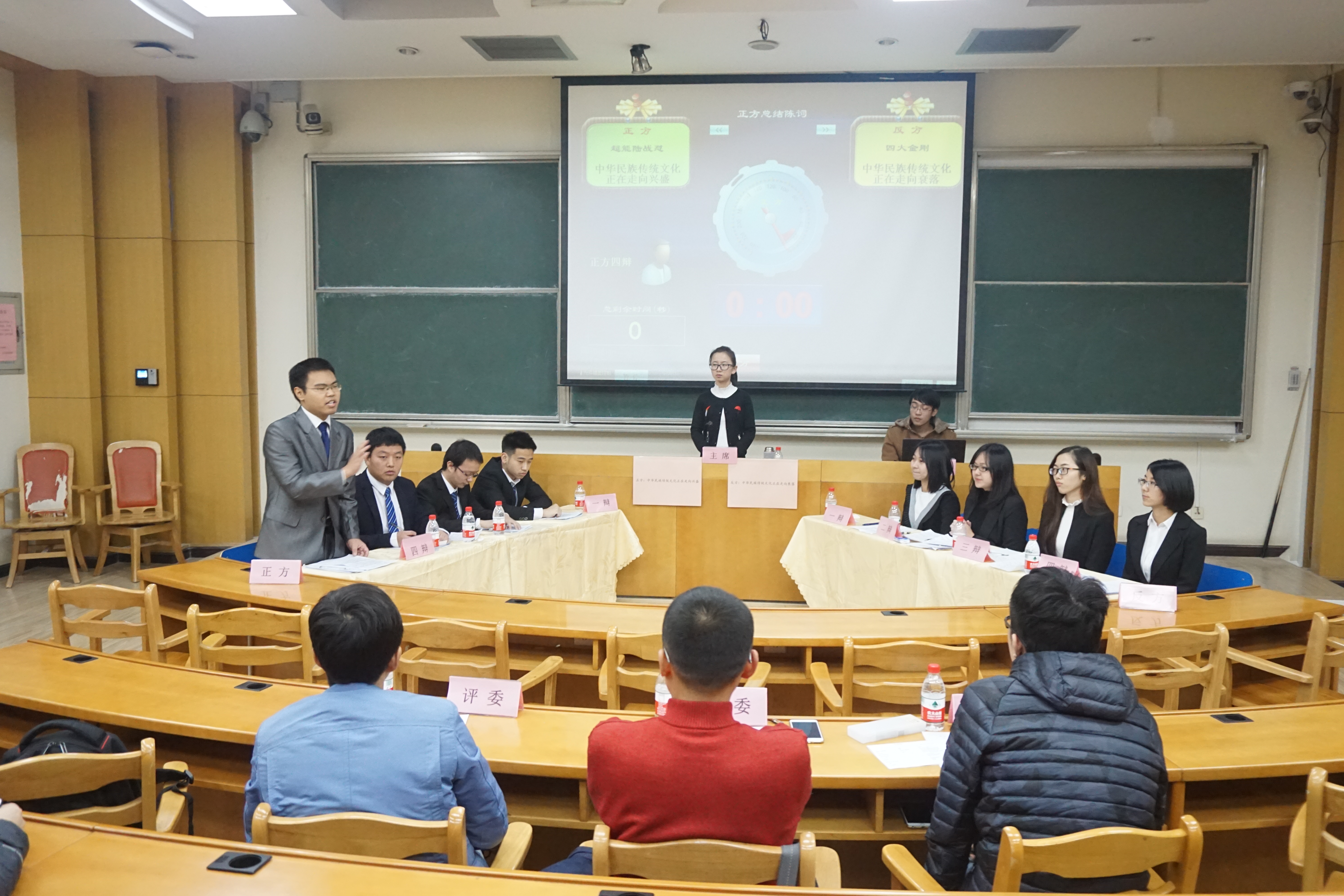 第二场比赛是“超能陆战怼”队和“四大金刚”队之间的较量,双方的辩题为“中华民族传统文化正在走向兴盛还是衰落”。比赛的序幕首先由正方一辩拉开,其从诸多实例落脚,颇有说服力地阐释了“中华民族传统文化正在走向兴盛”的现状。随后,由四位女将所组成的反方“四大金刚”队也进行了开篇立论,她们将传统文化分为三部分进行说明,论据充分,言语精炼。在之后的攻辩环节中,双方辩手互相质询,针锋相对,将现场的气氛带入了一个小高潮。自由辩论环节则更为精彩,正方辩手们从辩题出发,通过对辩题的细致理解给反方带来了不小的麻烦;而反方辩手们则沉着应对,很快化解了难题。最后,反方四辩当先进行了总结陈词,其抽丝剥茧般地从正方辩手们的观点中找出了六点“错误”,给予了对方“沉重一击”。而正方四辩的反击却也毫不示弱,其紧抓辩题,予以还击,言语激昂,掷地有声。双方辩手们个个能说会道,妙语连珠,赢得场上掌声阵阵。