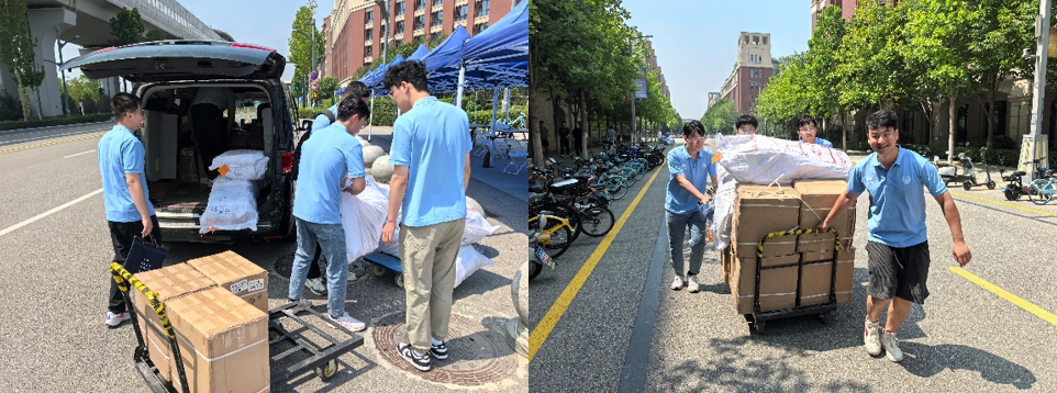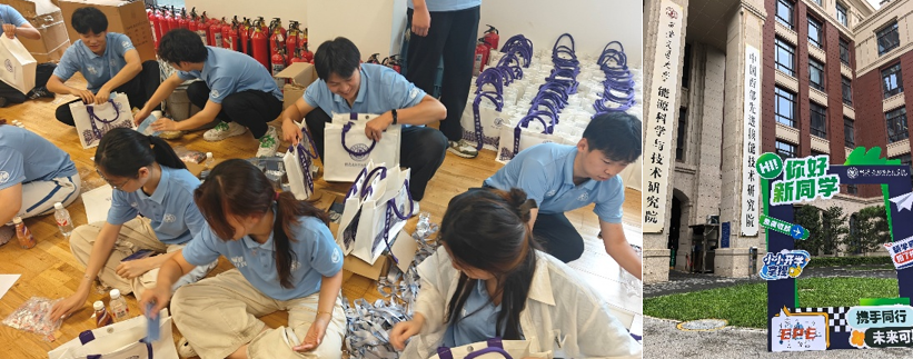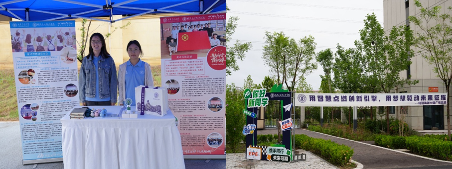 在迎新工作中精心设计氛围营造环节:在各校区迎新点位,专属照片打卡墙搭配主题迎新展架,用鲜明的视觉设计定格新生初入校园的灿烂笑容,记录下这一意义非凡的入学时刻;在新生宿舍区,一条条饱含期许的迎新横幅悬挂于楼宇之间,营造出热烈又温馨的欢迎氛围。与此同时,学院统筹安排志愿者全程值守,并为每一位新生准备了定制化新生礼包。这份礼包中不仅有实用的校园指南,还有满载学院特色的文创产品,将学院的关怀与心意融入细节,让初来乍到的新生瞬间感受到“家”的温暖。