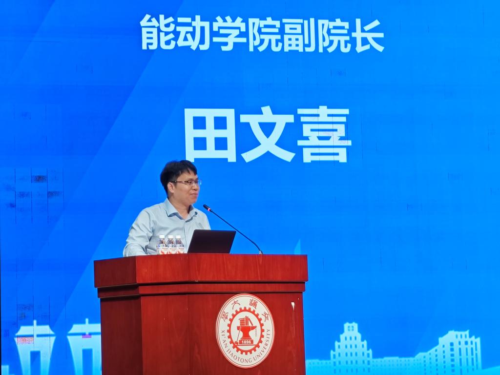 副院长田文喜教授代表学院向2025级新生表示热烈欢迎和祝贺,他分别从学院历史、学院现状、未来规划等角度全面介绍了司机社