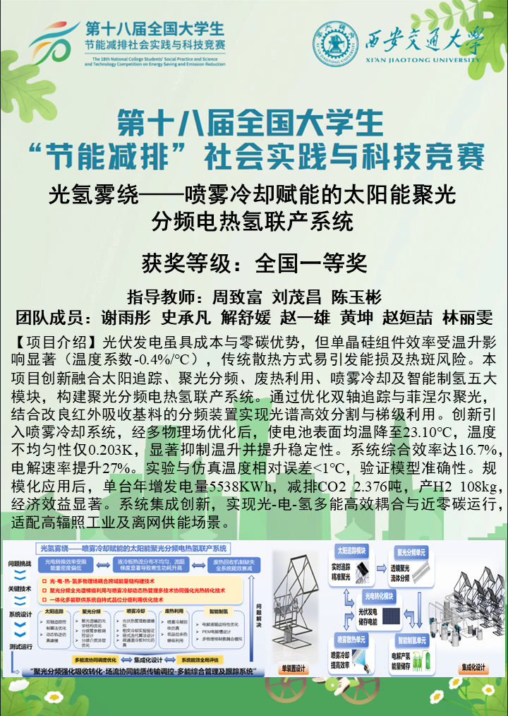 据悉,全国大学生节能减排社会实践与科技竞赛是由教育部高等学校能源动力类专业教学指导委员会指导、全国大学生节能减排社会实践与科技竞赛委员会主办的大学生课外科技作品和社会实践调查竞赛。该竞赛紧密围绕国家“双碳”战略目标等国家重大需求,坚持“节能减排、绿色能源”主题,积极落实国家“节能减排全民行动计划”,在教育部的关怀指导和广大高校的积极协作下,已发展成为高起点、精品多、覆盖面广且影响力大的全国大学生实践创新活动。