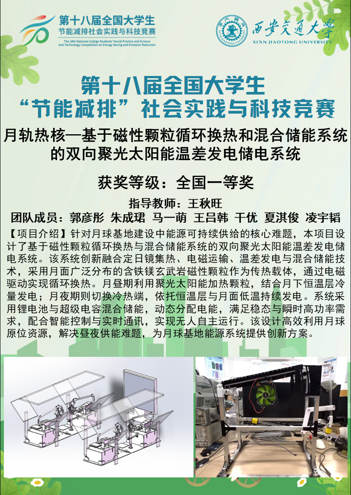 8月8日-11日,由教育部高等学校能源动力类专业教学指导委员会指导、全国大学生节能减排社会实践与科技竞赛委员会主办、东北石油大学承办的“招行杯”第十八届全国大学生节能减排社会实践与科技竞赛决赛在大庆市举办。西安交大代表队获一等奖6项、二等奖4项、三等奖4项,6篇毕业设计入选百篇全国能源动力类本科生优秀毕设,西安交大荣获优秀组织奖,西安交大自2024年10月开始筹备本届竞赛,由司机社