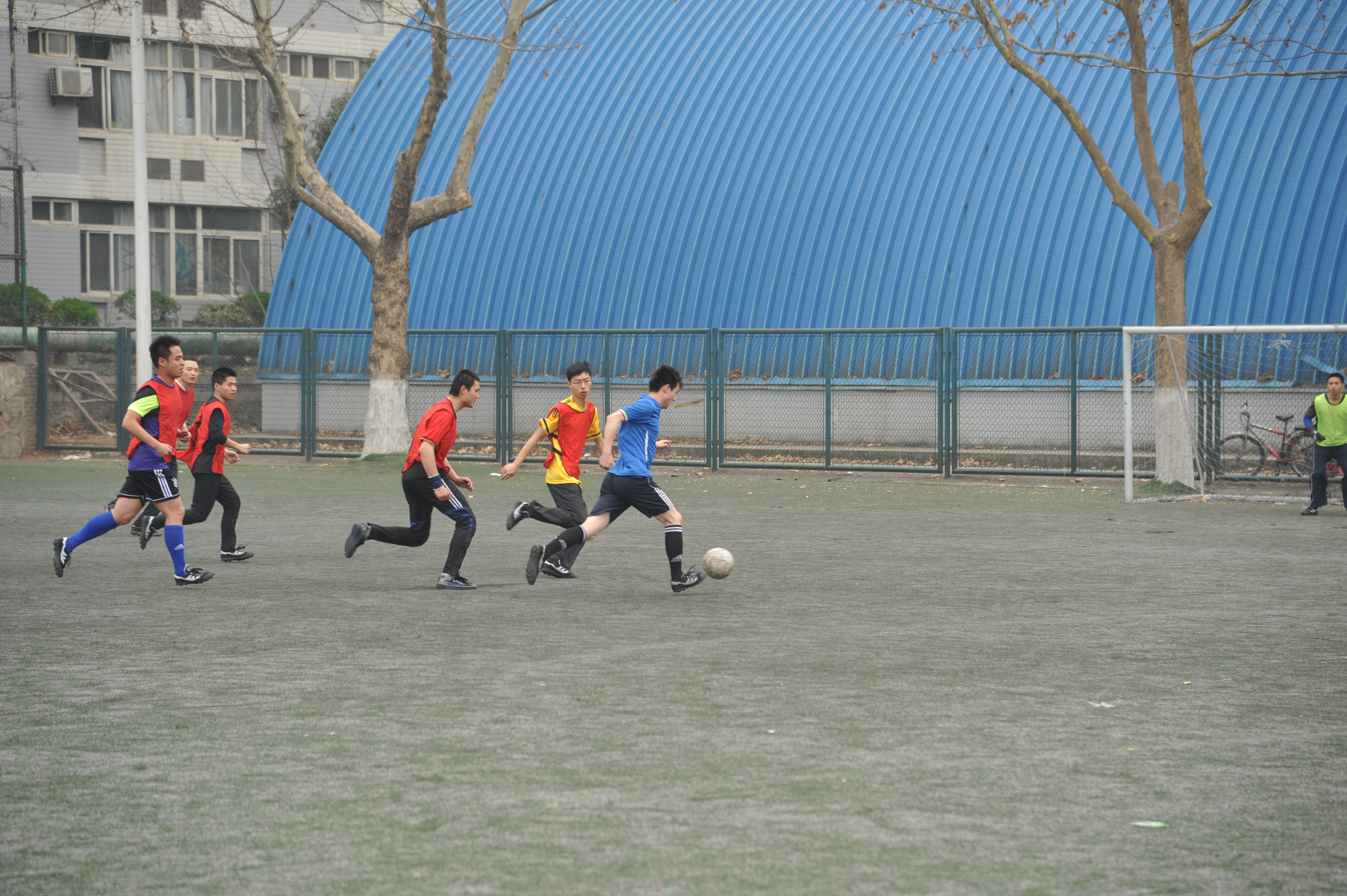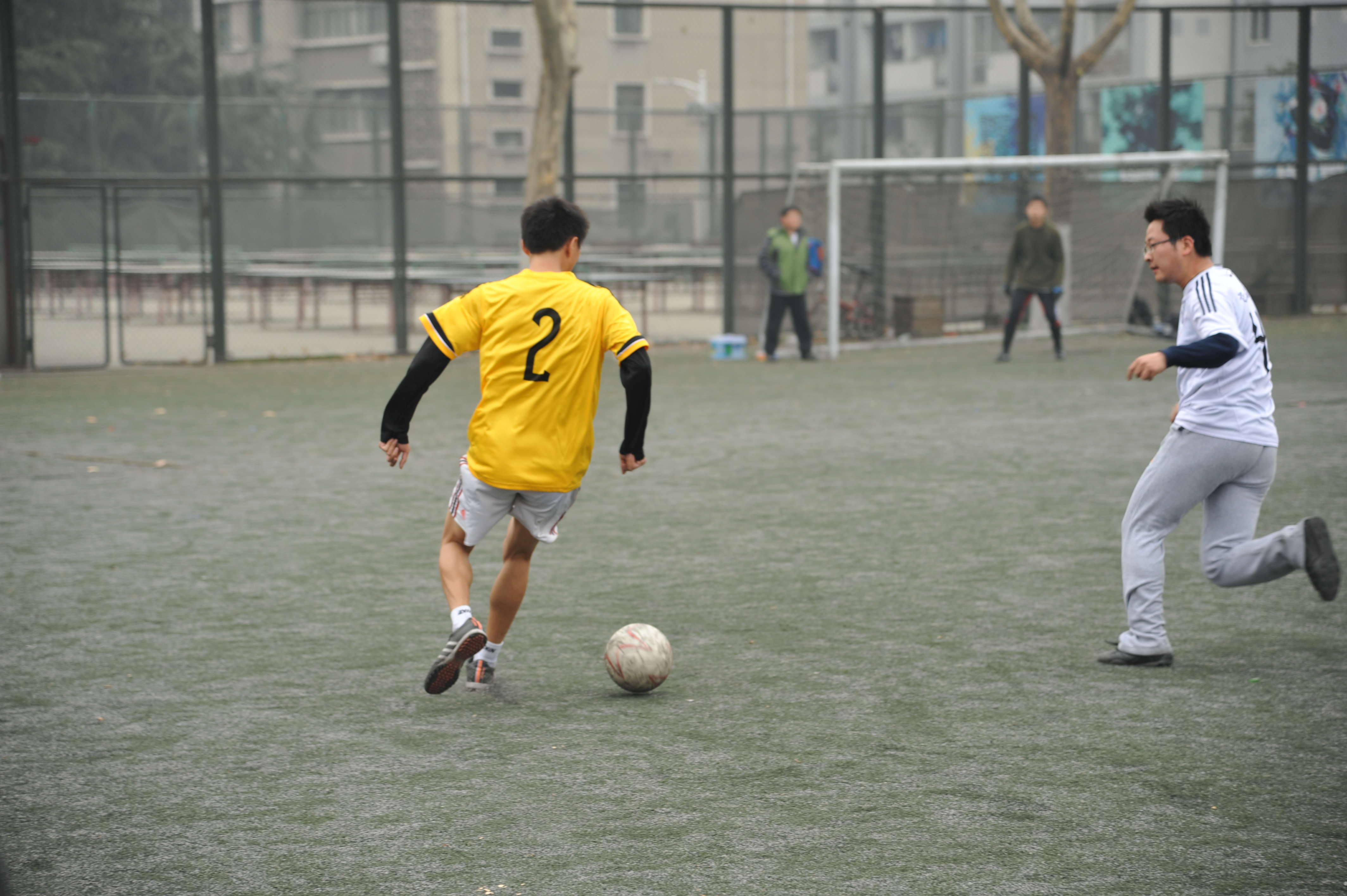 比赛刚开始,硕4015队赵晨同学就一脚远射取得领先,随后,硕4012队在进攻端加强兵力,上半场临近结束,硕4012队费昕阳同学底角一脚长传,禁区冯泽昊同学将球顶进,半场战成1:1,下半场开始,双方在攻守两端都很出色,使比分难以扩大,临近比赛结束,说4012班胥鹏同学在禁区附近抓住绝佳时机,一脚破门,此后,硕4015队加强进攻追赶比分,但未能如愿,最终2:1惜败。