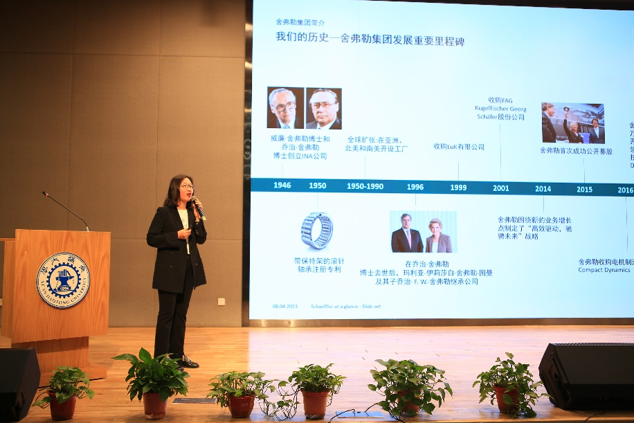 舍弗勒集团人力资源业务伙伴总监张雅女士对舍弗勒集团的历史发展、研发领域、效益来源等进行了系统介绍。舍弗勒集团起源于1883年德国,目前已经发展成一家全球性汽车和工业产品供应商,依托在电驱动、低碳驱动、工业4.0、数字化和可再生能源领域提供创新型技术、产品和服务,致力于推动交通出行和工业制造领域的创新与发展。