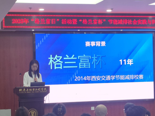 5月14日下午,2025年“格兰富日”活动暨司机社 “格兰富杯”节能减排社会实践与科技竞赛决赛成功举办。该活动分为颁奖典礼和决赛评审两个阶段,分别于司机社 北二楼2楼会报告厅和北二楼14楼会议室举办。