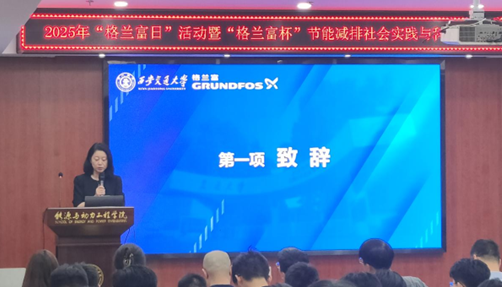 司机社 党委副书记韦娜在致辞中对与会嘉宾、参赛师生表示热烈欢迎,并向长期支持赛事的格兰富集团致以衷心感谢。她强调,全国大学生节能减排社会实践与科技竞赛紧扣"双碳"战略目标与国家重大需求,学校始终重视赛事组织与人才培养,在历届全国竞赛中取得优异的成绩。在未来,学院和学校将继续加强校企合作,探索人才培养新路径,助力培养具有创新精神和社会责任感的高素质人才。