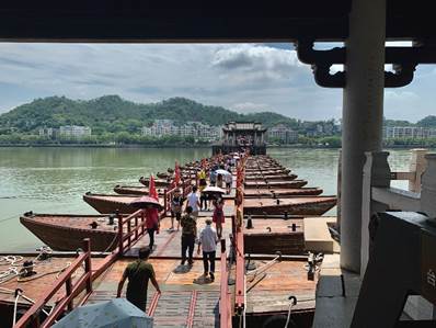 参观了牌坊街后,我们移步来到了俗称“湘子桥”的广济桥。广济桥坐落于潮州古城东门外,横跨韩江,是著名的潮州八景之一。同时广济桥在建筑史上,以其集梁桥、浮桥、拱桥为一体的特殊建筑形式,也是我国桥梁建筑史中最独具特色的“孤本”。并与北有赵州桥、卢沟桥,南有洛阳桥并称为中国四大古桥,可见其历史地位。