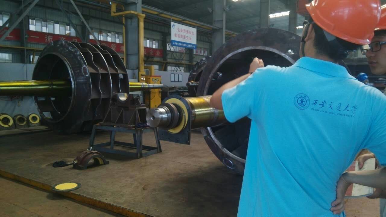 作为本次实习活动中人数最多的实践团队,压缩机组实践团总共有五名同学参与。在最初的实践过程中,成员们先对产品的图纸进行了学习,在进入厂房之前首先对产品有一个了解。学习完毕之后,由车间师傅带领进入生产车间。在参观过程中,大家对平日里在书本上难以理解的东西有了更直观的了解,并且对生产设备产生了浓厚兴趣。看过了德国进口的五轴联动叶片加工机床后,成员们无不对机床的精密以及加工技术的先进感到佩服,而从车间师傅那里得知每台机床售价成百上千万时更是感受到了公司对于行业先进技术的投入力度之大。在压缩机性能测试的参观过程中,大部分成员也是第一次近距离观看了压缩机的测试和运行过程。