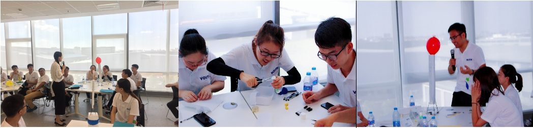 破冰之日的最后一个环节是小组任务,即各个小组利用给定材料制作一个稳定性好、尽可能高的“福伊特”之塔。这个环节要求成员具有快速反应、良好沟通协作的能力。原本不熟悉的各组成员通过这个活动迅速熟悉起来,携手合作完成任务。在任务期间,每位同学或是方案设计者、或是团队协调沟通者、或是团队辅助者,都发挥到了非常重要的作用。