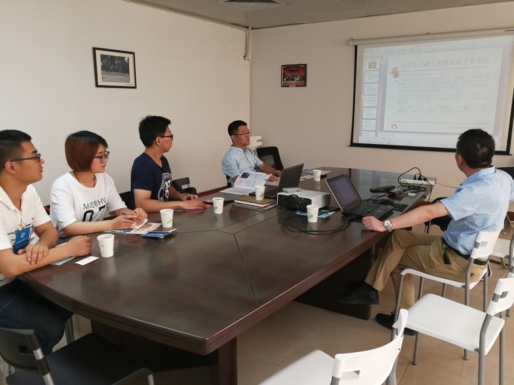 实践团的来访高度重视,在百忙之中特意赶到实践基地,以便下午的交流。下午三点,张总和任经理对我们的到来表示热烈欢迎,并对本次实习交流寄予厚望,他们向我们简单介绍了加力气体公司主要采用的空分流程和设备运行情况。张总监强调加力气体公司是一个致力于提供氮气、氧气和其他工业气体解决方案的公司,目前公司客户的主要是小型用气客户。随后任小强经理向我们介绍了加力气体公司的各个气站的情况,通过任经理对气站如数家珍的介绍中,我们看到了他对空分行业的热情和对加力气体公司的热爱。张总和任经理表示,希望通过与司机社