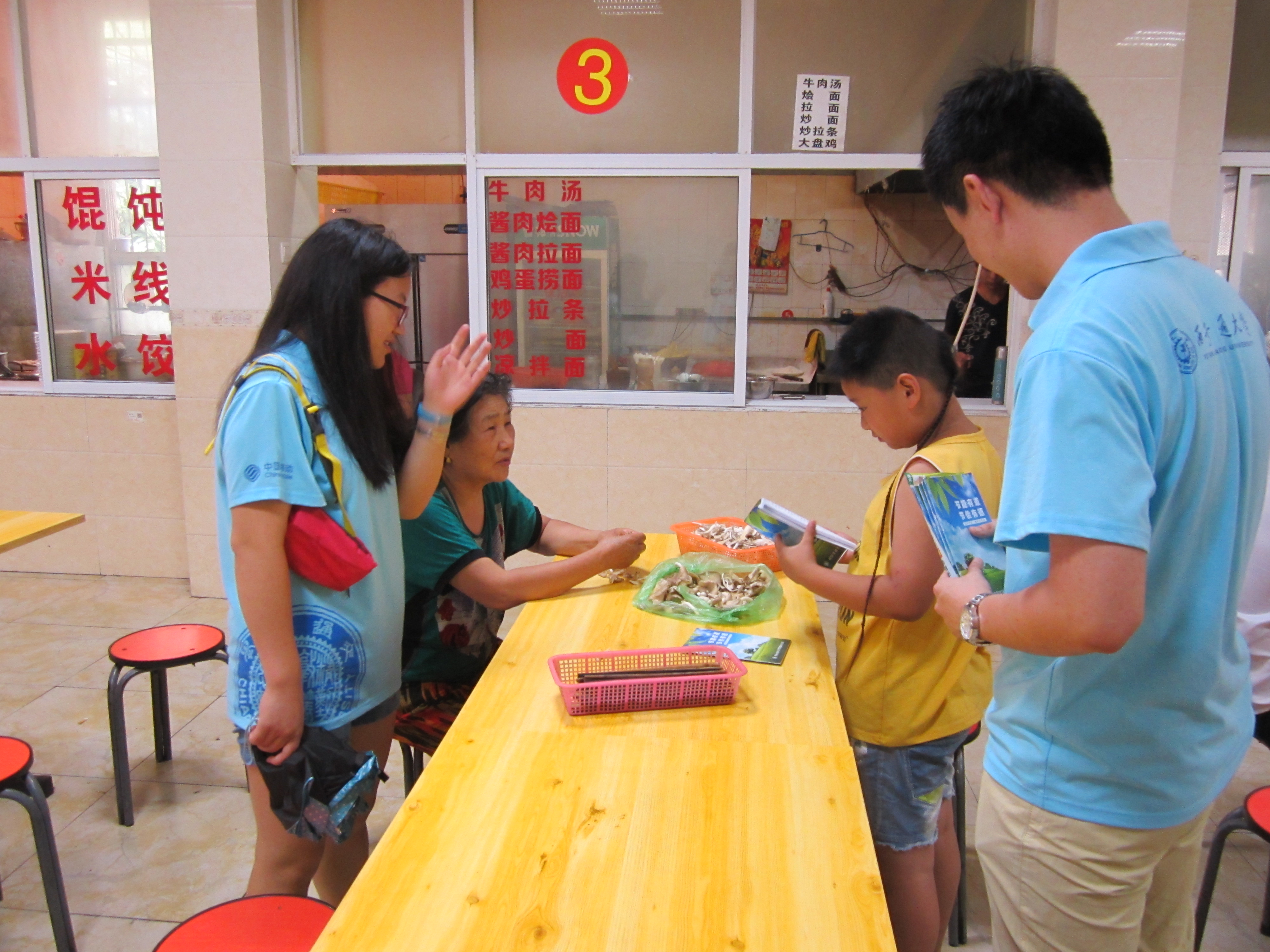 为了进一步扩大活动影响力,使节能减排相关政策、知识深入人心,队员们沿街挨家挨户地走访路边的便利店、蔬菜摊、水果店与小餐馆,向他们发放宣传册,讲解节能节水相关知识,帮助他们理解节能减排不仅于国于民有利,同时也帮助他们在日常经营中降低成本,提高效率,队员们富有针对性的建议与耐心细致的态度受到了广大商户的广泛赞扬。