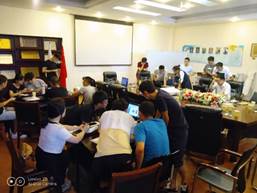 接下来,就是检验我们听讲结果的时刻了。我们和哈尔滨工业大学参与本次暑期实践的同学共计20人,两校学生相互穿插,共分成三个小组,分别代表A、B、C三个公司。在6小时内通过分析相应图纸和说明书来掌握各自公司锅炉产品的结构特点,根据某工程焚烧锅炉的招标项目绘制燃烧图,并制作相应PPT以参加模拟竞标。在张科长的项目讲解并发放题目过后,各组都开始了自己的分工讨论。尽管天气很炎热,但是大家的热情丝毫没有降低,由于时间比较紧急,因此大家中午都草草吃过午饭之后就又赶紧赶回会议室在电脑前奋战,俨然一副在现场竞标环境中身临其境的感觉。