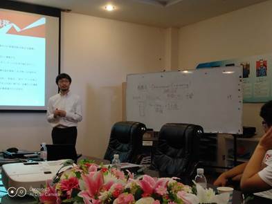紧接着,分别由公司的管理本部总经理渡边武志先生、共通事业本部总经理山内贵弘先生、环境事业本部总经理杨文杰先生以及制造事业本部田书营先生介绍各自部门的职能和运营理念,让我们对于公司的组织架构、管理、业务和职能以及具体的产品研发都有了一定的了解,同时对于同学们的一系列问题,四位总经理也是细心解答。尤其是在具体讲解环节,山内部长选取了一个生产中的实例,即螺栓采购,让交大和哈工大的同学分为两组讨论方案并选派代表进行讲解。在三分钟的讨论时间里,大家积极建议,群策群力,简明扼要地阐述了自己的观点。随后讲解的同学也是思路清晰,声音洪亮,博得了在座同学们的阵阵掌声。结果出来,两队加起来一共提出了将近10种采购方案,得到了山内部长的认可。