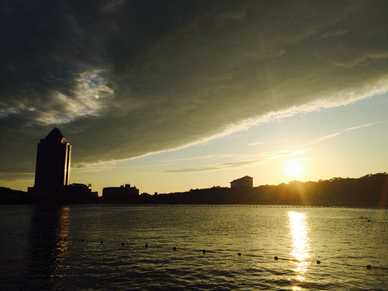 图7实践团成员们领略青岛著名景点——八大关的夕阳