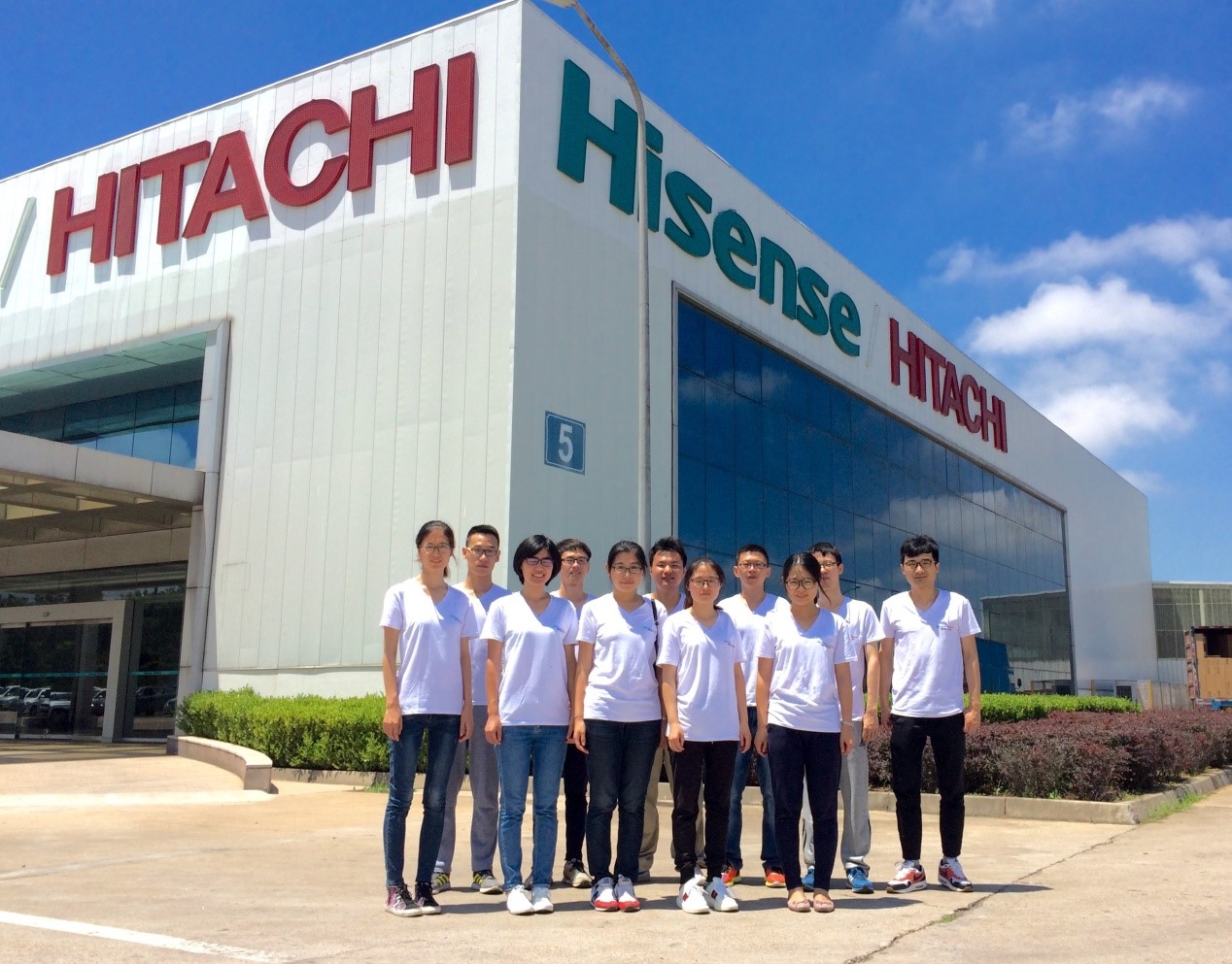赴青岛海信日立暑期实践团成员在厂房外合影