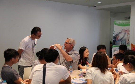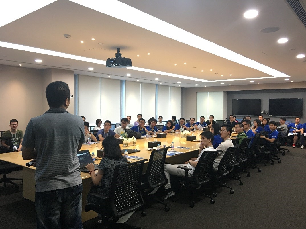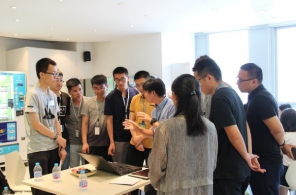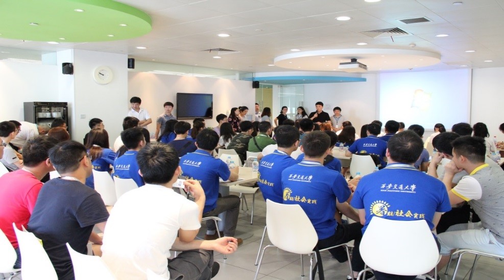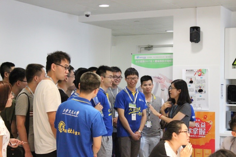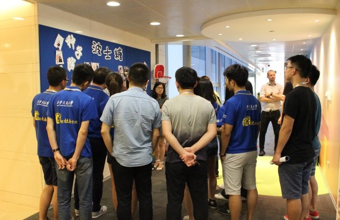 全体实践队员先在工作人员的带领下参观了各个部门,亲身体会到了远景开放式的办公室环境,很多年轻的面孔。远景工作人员介绍远景员工的平均年龄仅为29岁,也正因为如此,公司才能始终拥有鲜活、跳动的生命力。