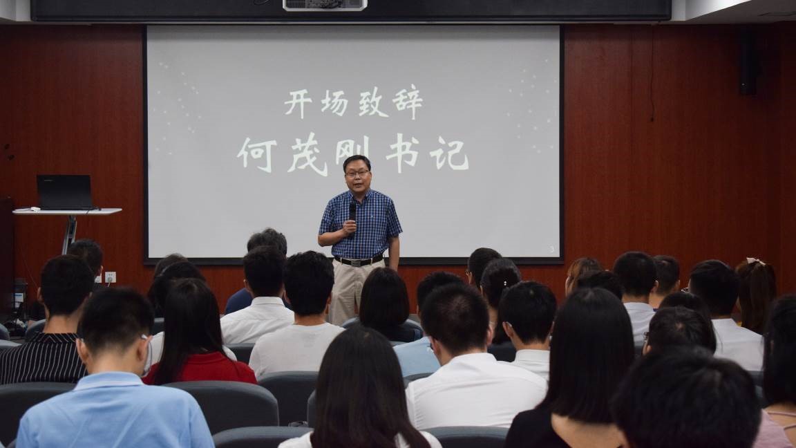 党委书记何茂刚在出征仪式上作开场致辞。何书记强调,社会实践是学生运用知识、运用能力、运用素养的一个重要载体,大学生在参与暑期社会的过程中,一方面,应当主动作为,积极联系企业,在企业当中主动思考,总结反思;另一方面,应走出国门,敢于走入国际化舞台,提升自己的国际化视野,为今后的多元发展打好坚实基础。