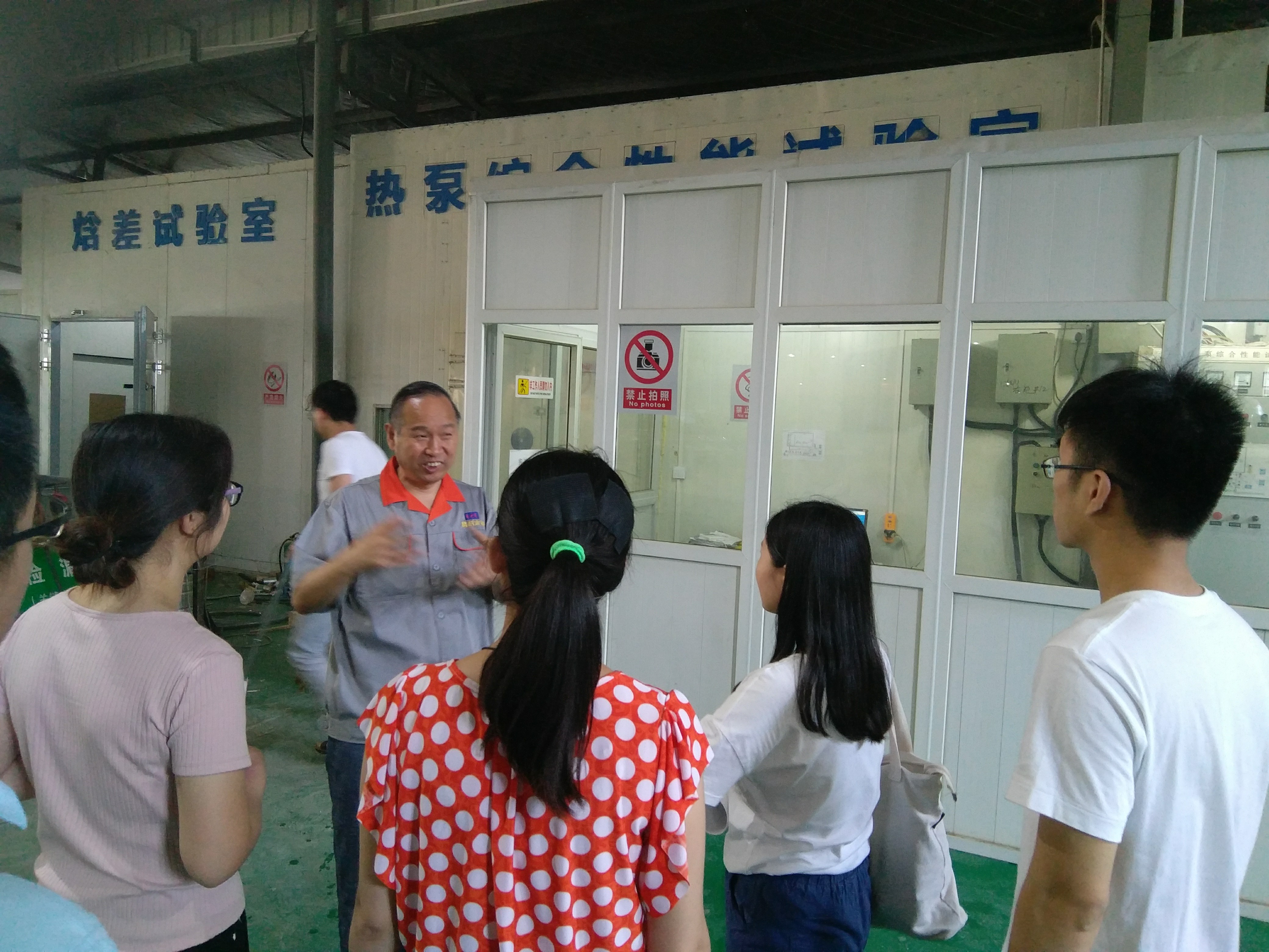 接下来,刘总介绍在煤改电以及倡导清洁能源的国家政策支持下,从去年开始,商用型热泵热水器市场形势较好,销量很高。这归因于中国制造崛起、经济快速发展的同时,国家开始注重环保和节能,政府在这方面的补贴逐渐增加。在刘总的引导下,大家开始讨论公司产品适用场所以及潜在的顾客,张咪同学说,自己的导师拟研究地热能,而生物质污泥水分含量较高,因此空气能烘干机则可派上用场。由此可见,类似的节能设备发展前景广阔,在生产生活中的用途也越来越多。在热烈的讨论过后,大家互相熟络起来,实践团队年纪最小的本科二年级成员郭乃志说,自己学习新能源专业,比较看中环保、清洁能源的前景,希望在这次实践中能够参与一些项目,向学长学姐多多学习!
