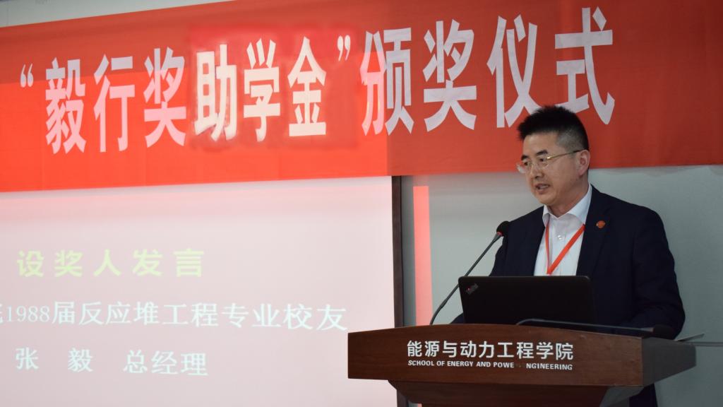 严俊杰院长高度评价了“毅行奖助学金”的设立,校友设立奖助学金助力母校发展,这一举措走在了学校建设世界一流大学进程的前列,起到了积极促进的作用。此外,严俊杰院长回顾了“毅行奖助学金”的设立过程,高度赞扬了张毅总经理的慷慨捐助并希望获奖学生要努力学习,发扬优良校风,早日为国家和社会的发展做出自己的贡献,为世界之光。