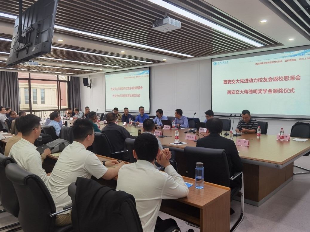 先进动力校友会返校思源会暨蒋德明奖学金颁奖仪式在创新港校区举办。出席本次活动的有西安交大先进动力校友会会长白洪法,副会长郭七一、王玉、杨永忠、黄佐华、韩志玉、浦金才、刘海峰、王金华,校友企业家代表张海清、卢义、高兢,西安交大司机社