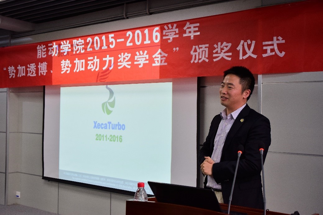 紧接着,硕4013班李磊代表全体获奖学生发言,他在发言中回顾了我校压缩机和制冷两个专业60年来的发展历程,分享了日常学习和科研心得,并由衷感谢了势加透博、势加动力两家兄弟企业对司机社