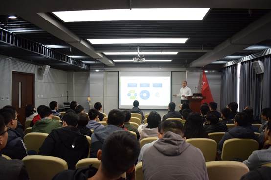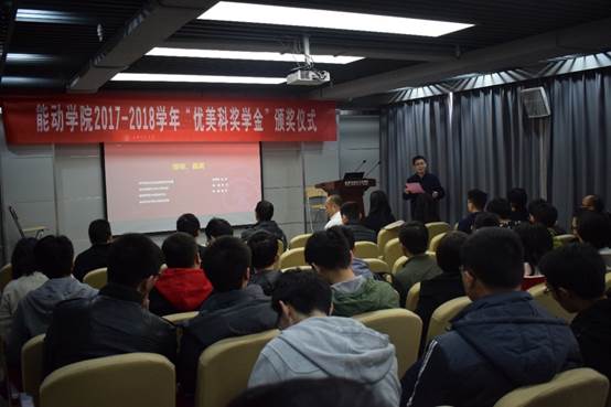 颁奖仪式后,能动校友、优美科公司高级技术经理龙学明先生做学术报告,在报告中,他讲述了应对未来超低排放的催化技术、现阶段国内外针对二氧化碳排放的法律法规,分析了全球电动车和燃油车的发展趋势和未来发动机所面临的机遇与挑战。希望同学们珍惜在校的美好时光,努力学好专业课,为以后在企业的岗位上能更快进入工作状态而打好坚实的理论基础。