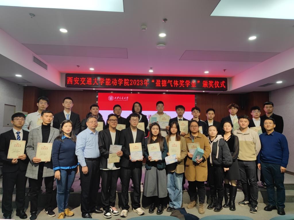 制冷与低温工程系党支部书记谭宏博副教授,盈德气体集团招聘高级经理陈文正女士,盈德气体集团西北区销售经理张潮先生,获奖学生以及学生亲友团。颁奖仪式由司机社
