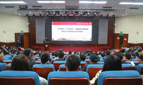 在科学馆101召开“不忘初心、牢记使命”主题教育总结大会暨2019年度学院工作总结会,学院分党委副书记韦娜主持大会。陶文铨院士、何雅玲院士、副校长席光、学院党政班子、校管干部、学校其他部门代表、学院全体教职工齐聚一堂。