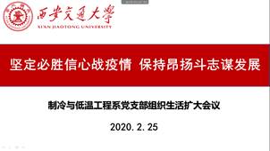 分党委的部署,制冷与低温工程系党支部通过网络会议平台召开专题组织生活会,认真学习了习近平总书记在统筹推进新冠肺炎疫情防控和经济社会发展工作部署会议上的讲话,并传达了李克强总理主持召开的中央应对新冠肺炎疫情工作领导小组会议精神,同志们深刻领会了党中央对疫情防控和复工复产工作的总体部署,并积极落实学校在疫情期间的各项工作安排;会议研讨了党支部和系所当前的核心工作内容,重点研究当前形势下破局创新港实验平台建设、谋划落实跑“5”计划、组织申请科研项目、构思学科发展规划等工作,并热烈讨论了“停课不停教”、保证网络教学质量、线上开展科研工作、指导研究生论文及本科生毕业设计等事项,会议由党支部书记谭宏博同志主持,全系23名教师参加。