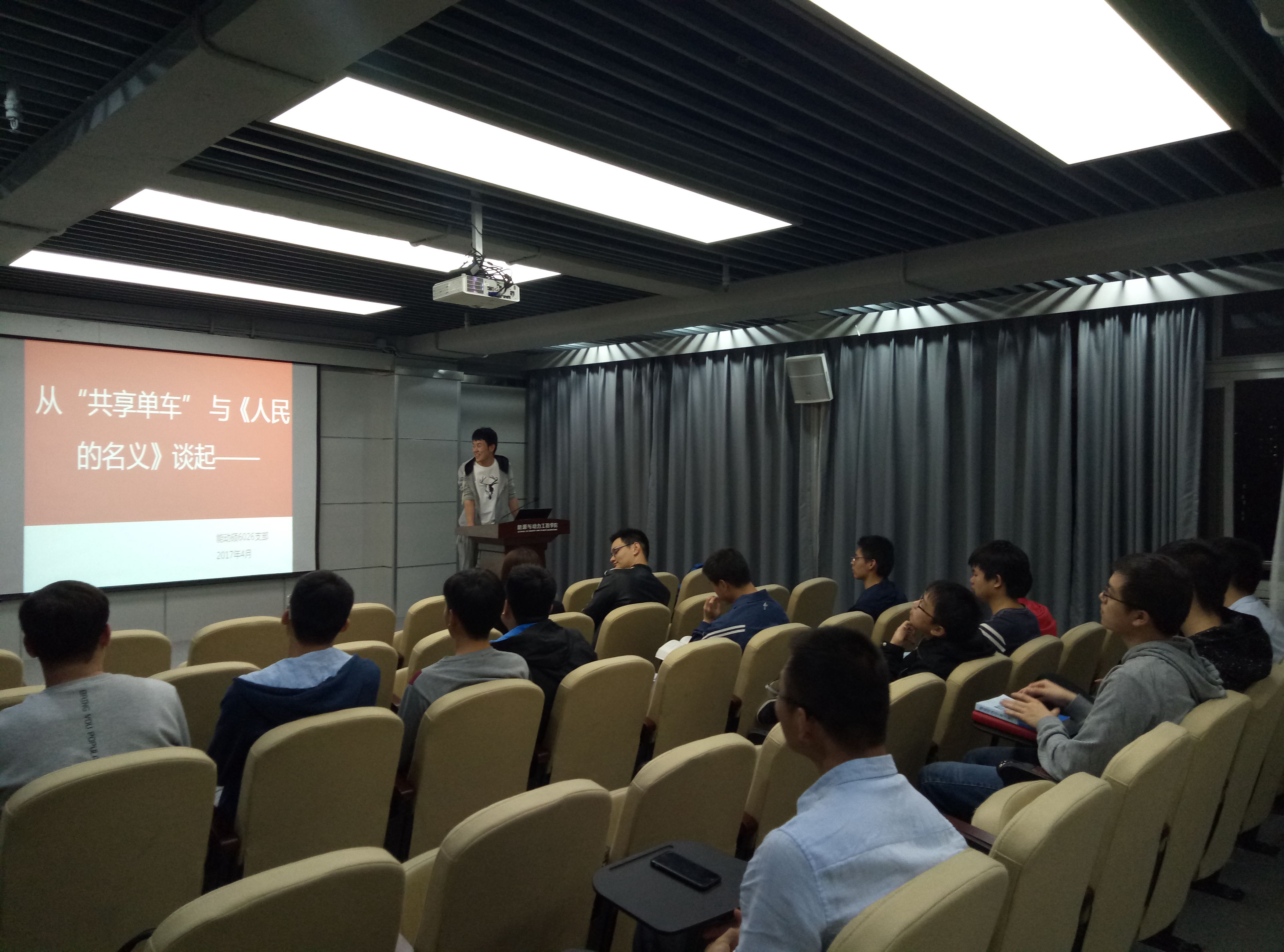与会的同学们在会上围绕剧情和感悟进行了热烈的讨论和交流。张建东同学对《人民的名义》剧情大加赞赏,他讲到,这部剧不同于以往一些抗日神剧,剧中的每个人物都特别饱满而富有立体感,腐败分子的刻画更是入木三分,把反腐演绎得深入人心。闫少敏同学认为,当今娱乐媒体积极响应党和人民的号召,直面社会现实,彰显了全党上下全面从严治党的决心。关于国家反腐工作的进一步推进,韩沛东同学援引习总书记“把权力关进制度的笼子里”的理论,认为制度建设工作也应该是从严治党的一部分。