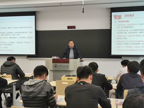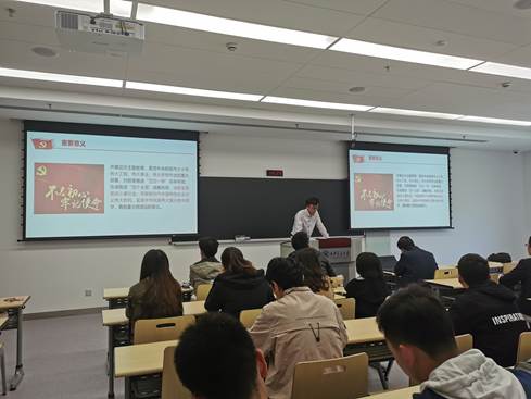 党支部对“不忘初心,牢记使命”的学习落实情况,为大家更好地学习贯彻落实党的教育提供了借鉴;并用一位老教授的事例启发大家。何茂刚教授指出,作为学生党员,要按照党委的学生部署,扎扎实实做好工作,把“不忘初心,牢记使命”体现在学习科研上,落实到行动中去。最后,何茂刚教授分享了老一辈共产党员在艰难困苦的环境下努力奋斗不断进步的历程,鼓励同学们要学习老一辈的精神,在中国西部科技创新港认真学习课程,认真科研,并鼓励同学们参与到创新港的建设中去,为学校、为社会、为国家做出更大的贡献。