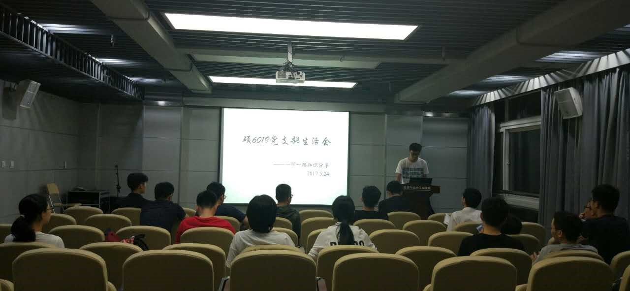 2017年5月24日晚,硕6019党支部于北二楼1402组织了一次别开生面的党支部生活会,整场会议内容充实,惊喜不断。会议分为两部分,首先由积极分子卜红岩同学为大家分享了“一带一路知识”,接着由党员上官栋栋同志结合习近平总书记关于科技创新论述相关讲话发表了自己的看法。