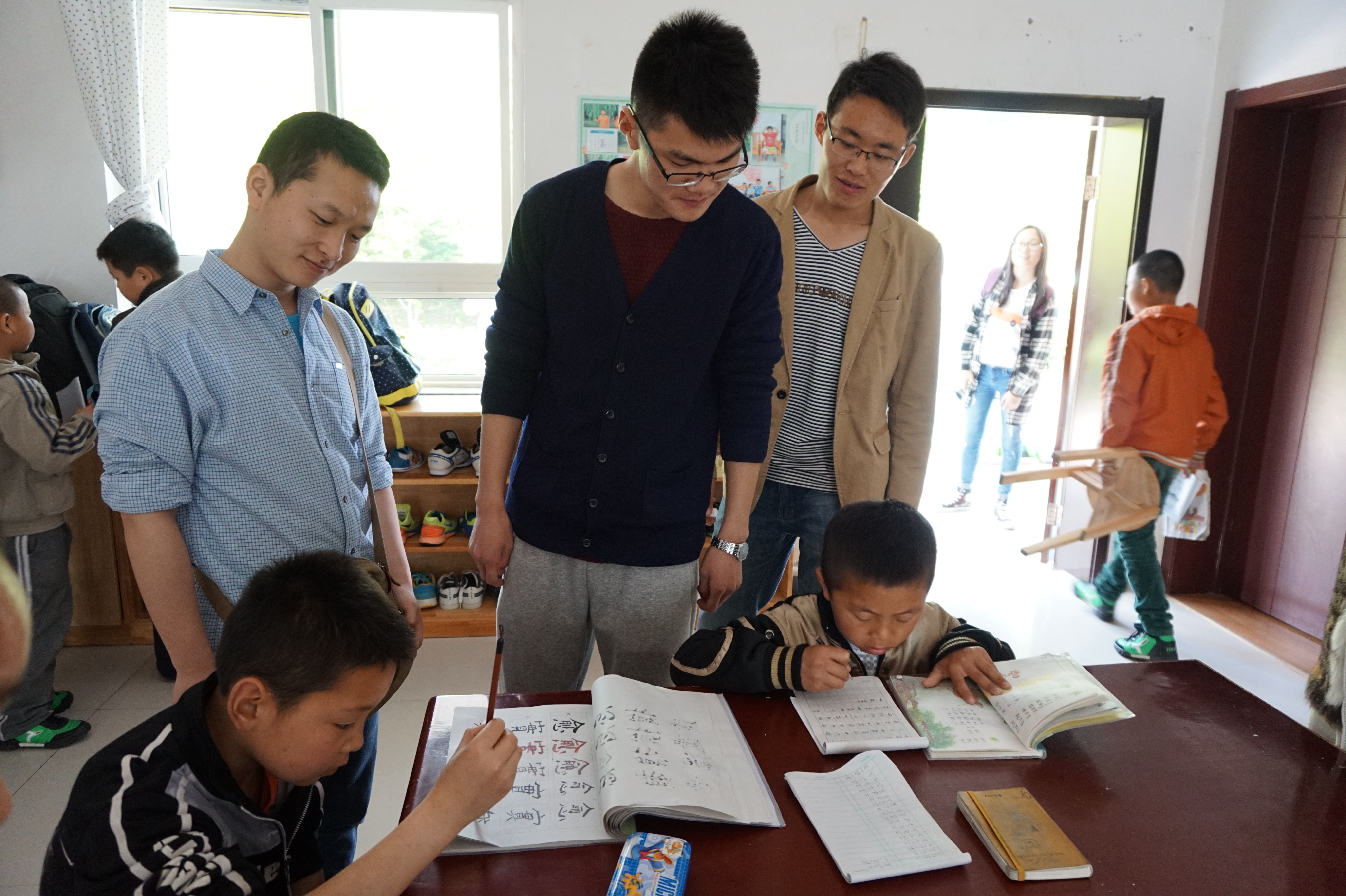 得知孩子们当天都在爱心小屋中学习后,支部成员主动地为儿童村的孩子们辅导功课并与孩子们就学习经验和方法进行了细致的交流。除了辅导功课之外,支部成员还积极地为儿童村进行了卫生打扫,以及帮儿童村的果园清理杂草等等力所能及的事情,尽自己所能去帮助这些可爱的孩子们。