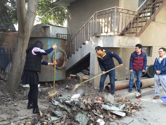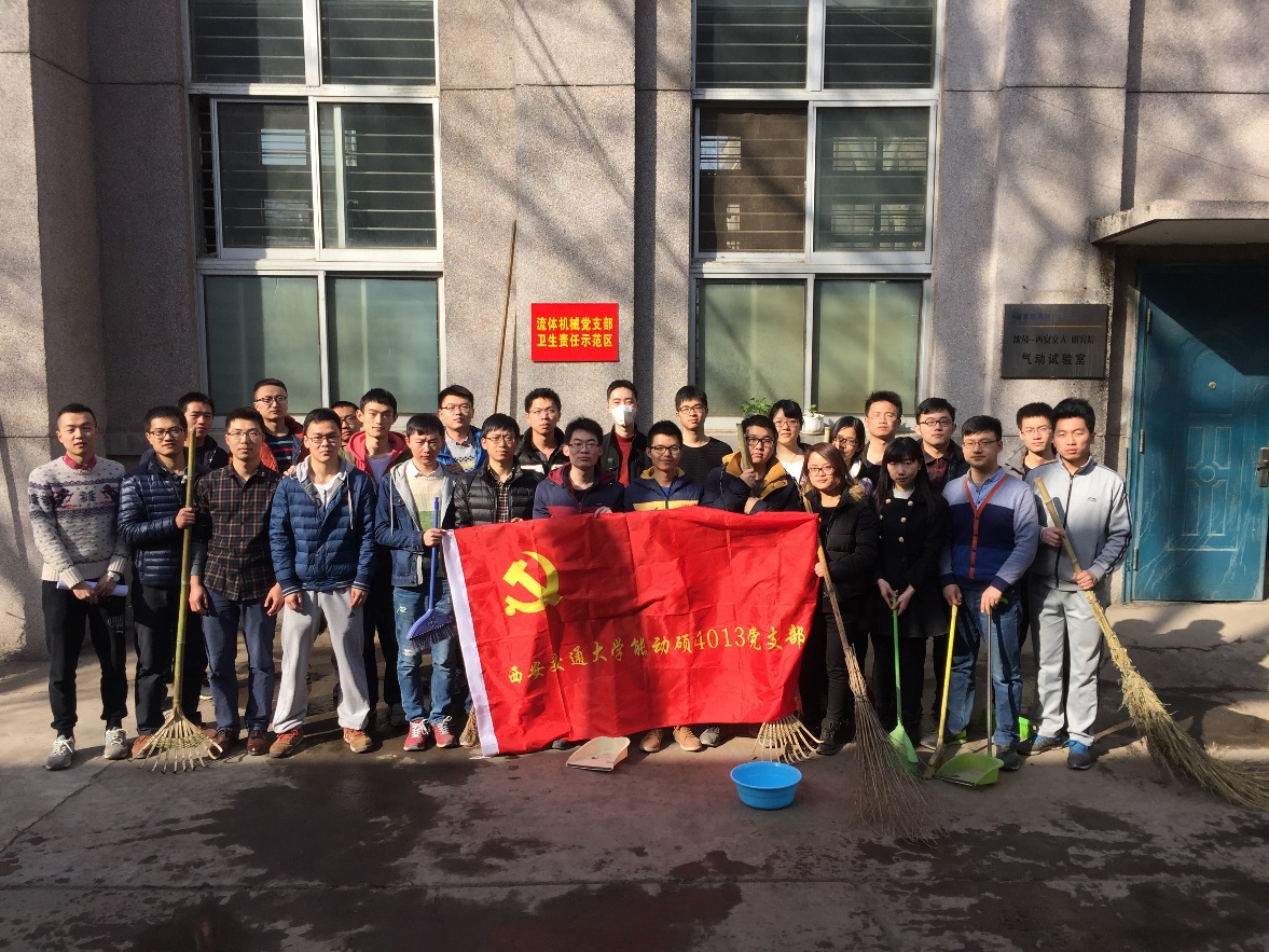 将迎来建校120周年暨迁校60周年。在校庆来临之际,交通大学要以一个崭新的面貌面向各界人士,而环境问题则成为首要工作。为了营造优美、整洁、有序的校园环境和弘扬西迁精神,校党委动员全体师生用勤劳的双手,创造优美整洁的环境以崭新的面貌迎接校庆。为积极响应学校及学院的号召,2月26日下午由能动硕4013及5014党支部牵头自发成立了校园卫生环卫队并创建了卫生责任示范区,主动承包打扫了较陈旧凌乱的气动大院及其周围环境。