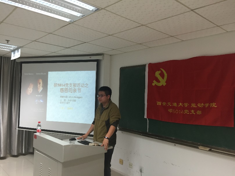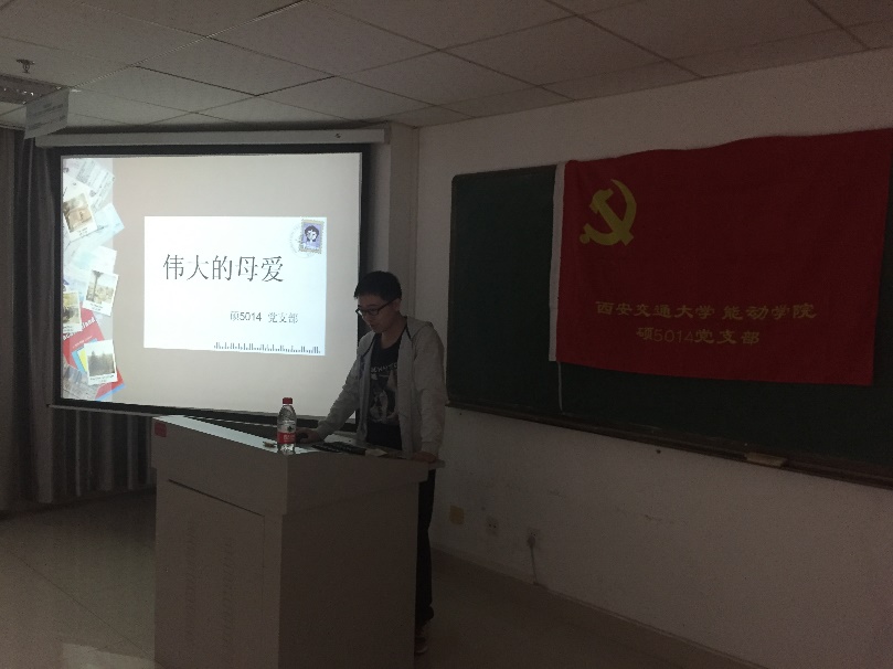母爱是一缕阳光,让你的心灵即使在寒冷的冬天也能感到温暖如春;母爱是一泓清泉,让你的情感即使蒙上岁月的风尘依然纯洁明净;母爱如一阵微风,让你的心情即使再怎么烦躁不堪仍然能感到清爽明朗。2016.5.8日,伴着夏日温暖的阳光,在母亲节来临之际,硕5014党支部精心准备了一场关于母爱的视听盛宴,一起感怀伟大的母爱,一起经受心灵的洗礼。