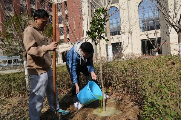 硕2045党支部积极开展“节能减碳•建设美丽校园”植树活动