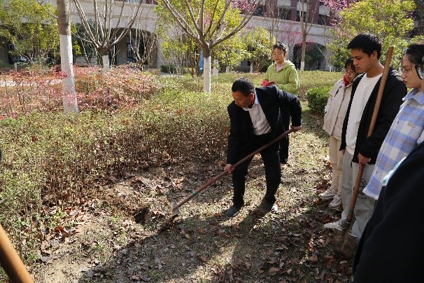 在活动现场,苏东吴物业的绿化技术人员向参与的党支部成员详细介绍了植树的三个关键步骤:挖树穴、回填土壤和浇灌,确保每位参与者都能正确进行植树。通过一个多小时的共同努力,数棵桂花树苗被成功种植,每棵树苗还被挂上了介绍牌,为校园增添了新的绿色生命。