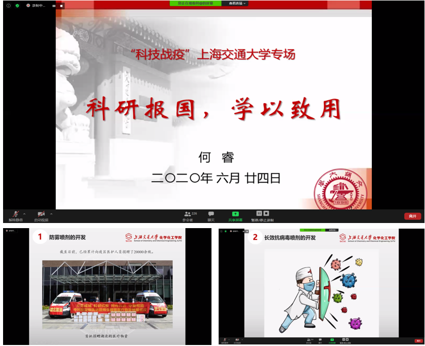 第四项,上海交通大学博士生何睿作收场主题为“科技战疫”的专题报告。何睿博士用他自己在疫情防控期间的“科技战疫”故事告诉在座的党员同志们科学研究的社会价值以及作为党员在“大考”面前的现实作为与担当。