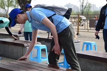 上午,同学们很早就赶到活动现场,从打扫卫生、签到、发放物资以及领小朋友们入场,大家都投入在忙碌而又有趣的工作中。孩子们第一次见到志愿者们,显得有些胆怯和陌生。随着大家热心而又主动的交流,慢慢地,孩子们对志愿者们熟悉了,也会好奇地问大哥哥大姐姐们一些问题。