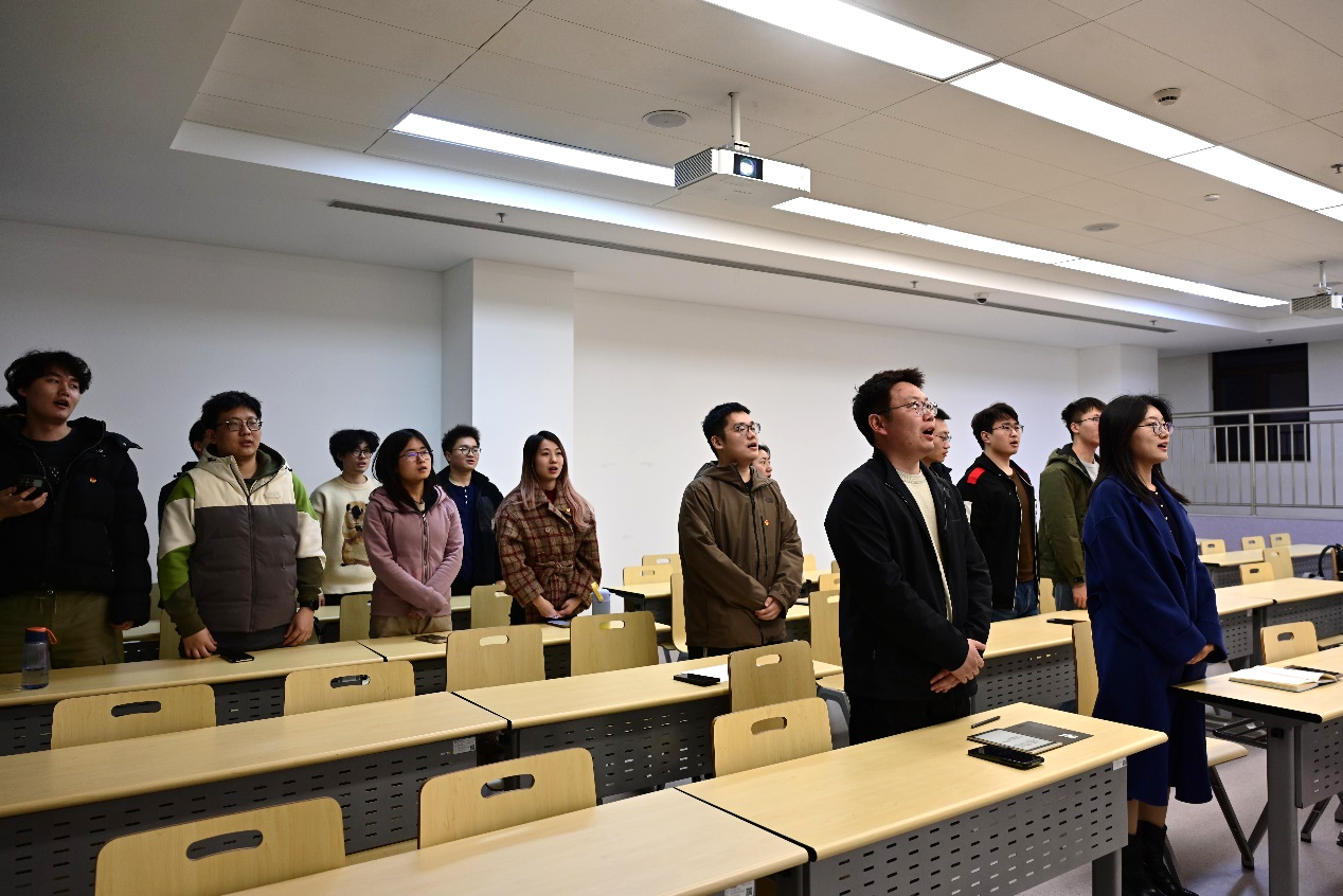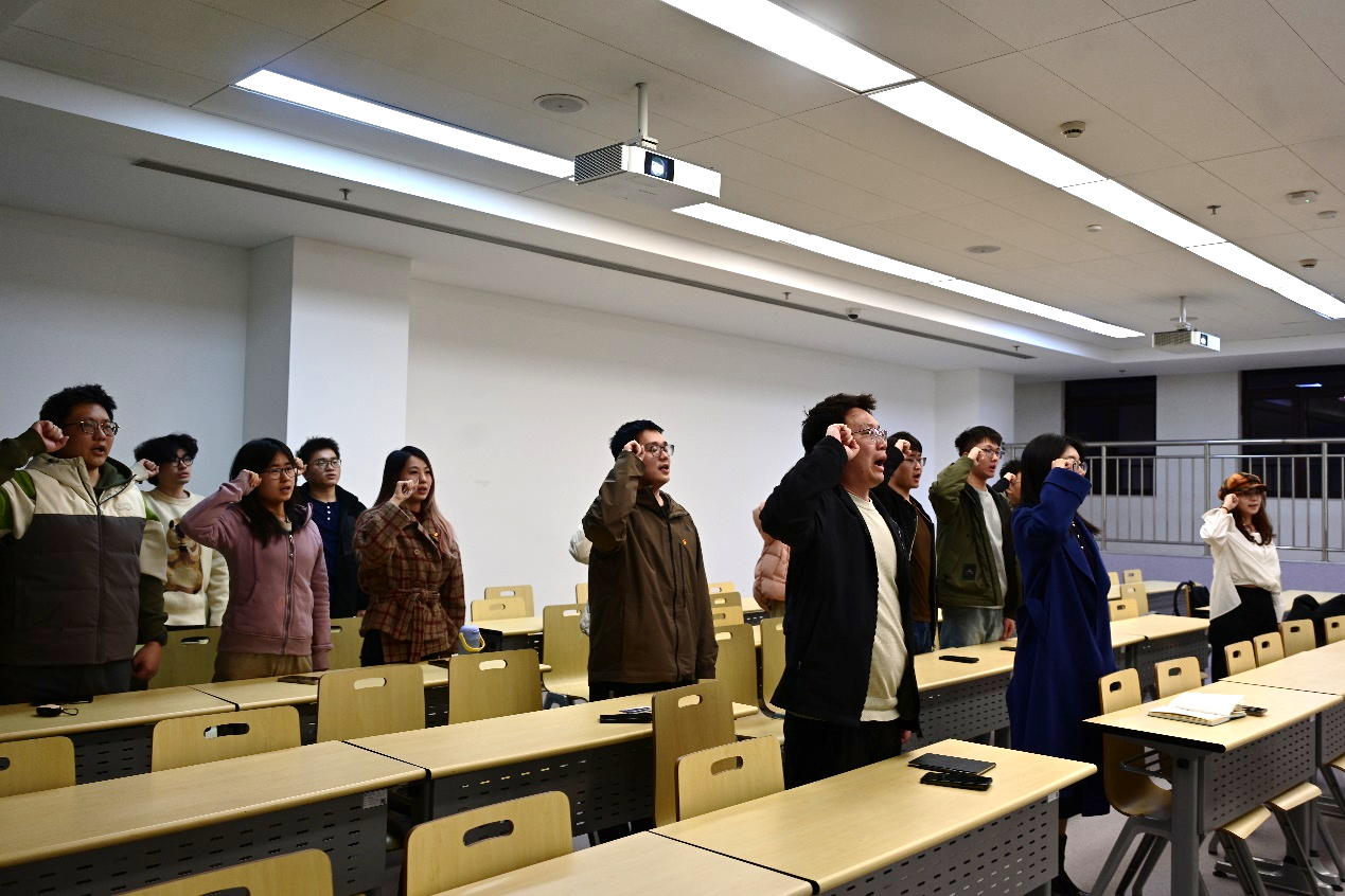 会议最后,硕4031团支部全体成员在领誓人郑龙的带领下举起右拳,庄严宣誓,重温入团誓词。铮铮誓言激昂嘹亮,激励着每一位团员不忘初心、牢记使命,为实现中华民族伟大复兴贡献青春力量。